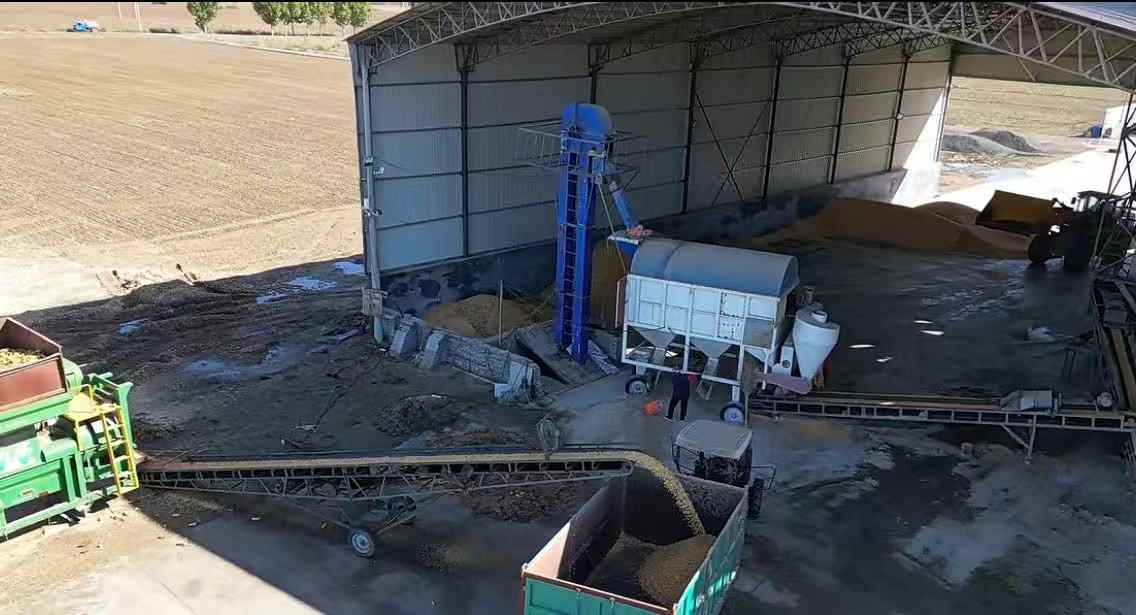 在烘干設備旁,能清晰看到濕玉米粒的“變身”全過程:村民們運來的濕玉米,順著傳送帶給料機源源不斷涌入烘干機身,經過內部精準控溫的烘干程序后,含水量降至安全標準的干玉米從下方出料口傾瀉而下,落到輸送帶上,最終被轉運至一旁的倉儲倉。金黃的玉米粒在傳送帶上流動,宛如一條“黃金溪流”,映襯著種植戶們安心的笑容。