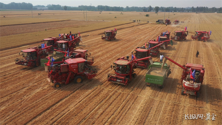 農(nóng)機(jī)在河北省邯鄲市臨漳縣收獲小麥。長(zhǎng)城網(wǎng)·冀云客戶端記者 李齊昊 攝