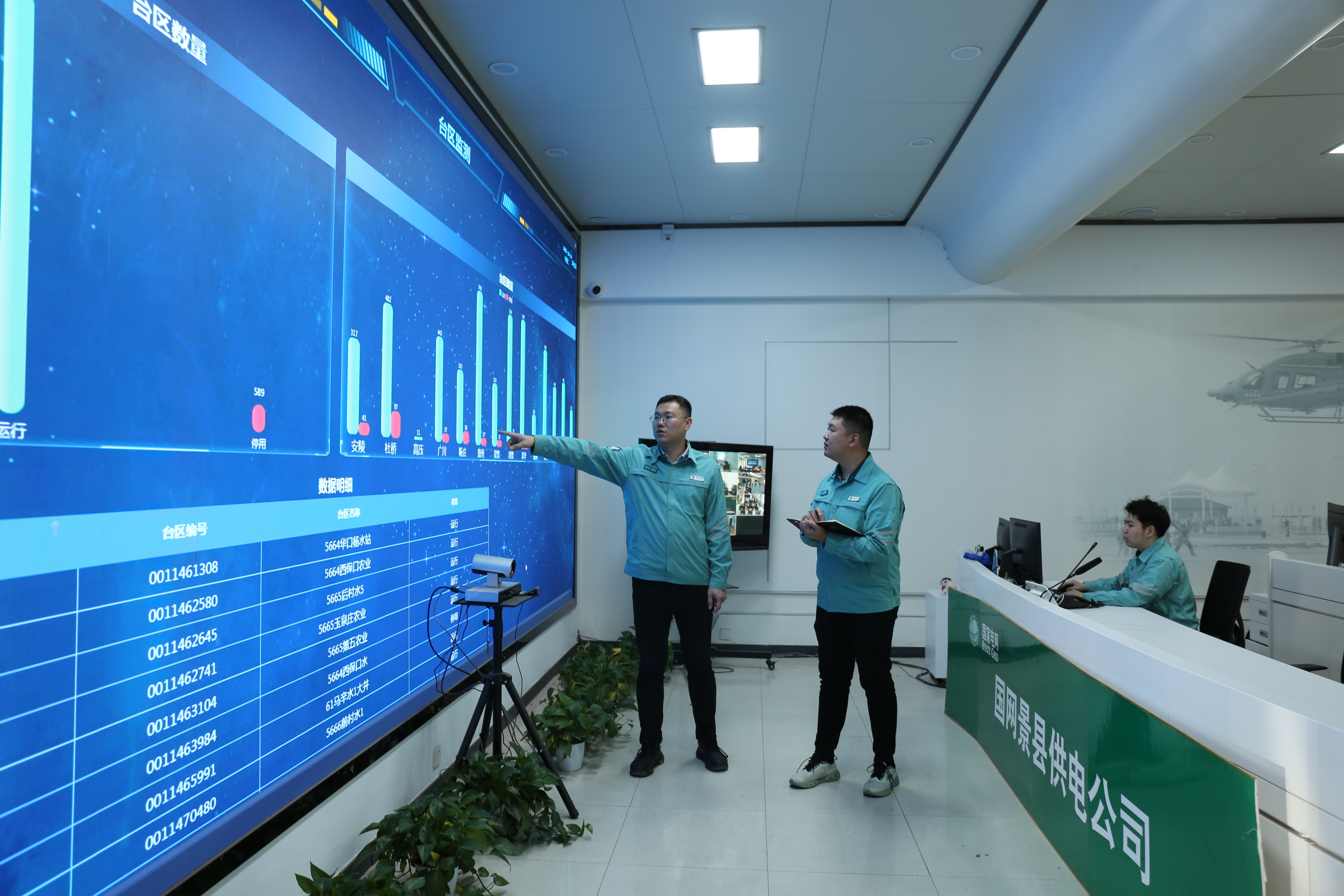 國網景縣供電公司工作人員利用全業務監控系統對烘干相關臺區設備進行狀態監測。