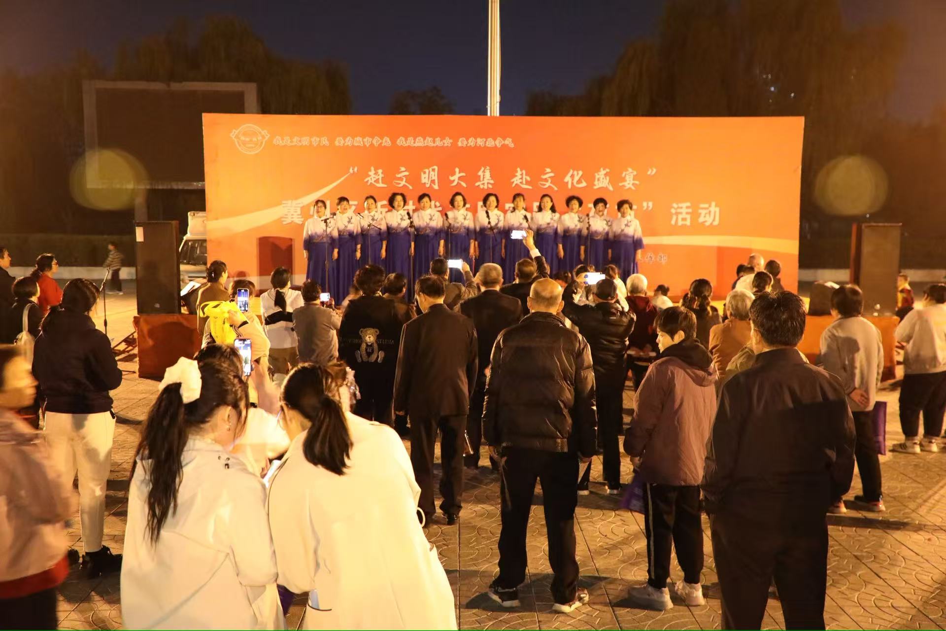 在便民服務宣傳區,工作人員圍繞居民日常關注的民生政策展開全面解讀,真正讓便民服務變得“觸手可及”。而“婚戀幫幫團”的服務點位更吸引了眾多居民駐足,該服務集移風易俗宣傳、公益紅娘牽線、專業婚戀心理輔導與婚戀法律咨詢于一體,為居民提供了“一站式”婚戀服務支持。各宣傳點位在貼心服務的同時,積極傳遞文明理念,讓文明新風吹進社區。此外,各社區還精心編排了歌舞表演、樂器演奏、大合唱等文藝節目,充分展現了冀州群眾積極向上的精神風貌和文明風采。現場歌聲、掌聲、歡笑聲交織在一起,讓居民在輕松愉悅的氛圍中共享鄰里溫情,感受文明新風,構成了“文明夜市”最動人的樂章。“能看精彩節目,還能享受便民服務,我覺得這個文明夜市活動舉辦得很成功、很惠民。”春風社區居民張翠英連連點贊。