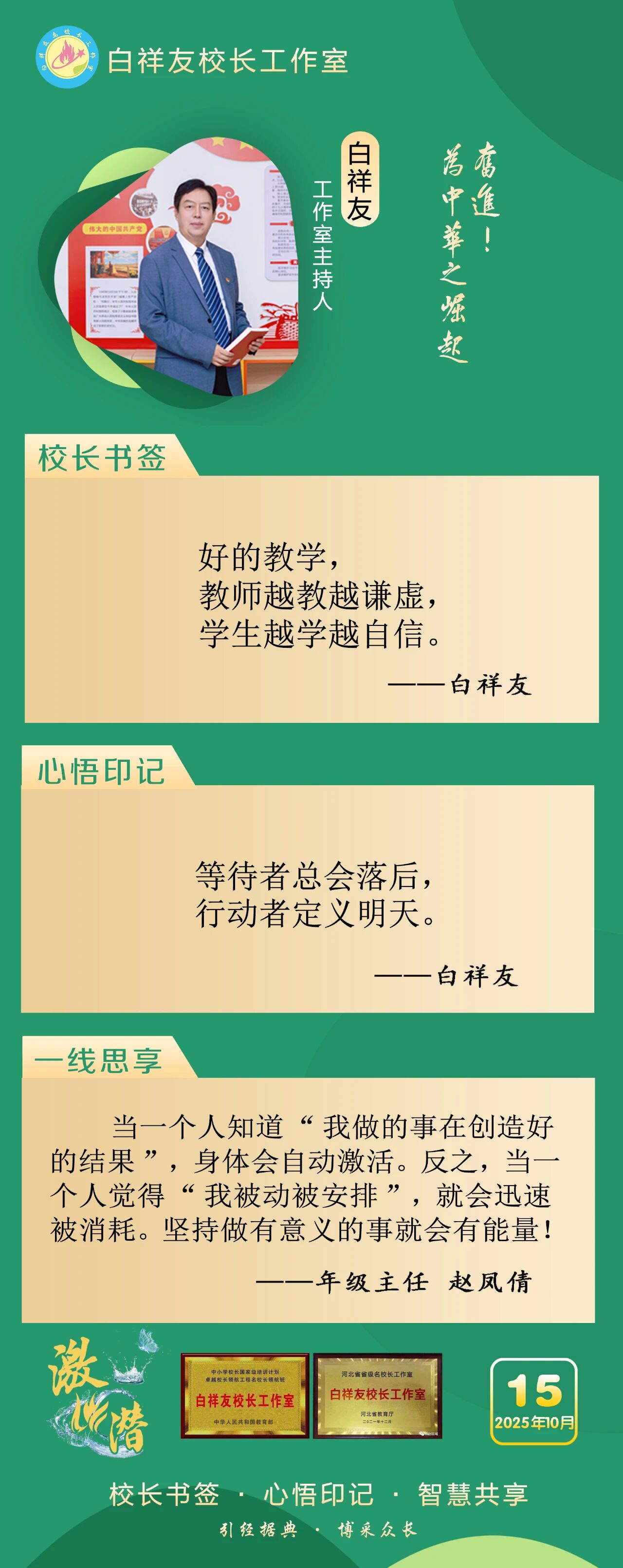 “白祥友校長工作室”成立于2019年4月,是教育部“國培計劃”中小學名校長領航工程、河北省首批名校長工作室,目前省內外成員校59所。工作室堅持“資源共享、智慧共融、互助共贏”理念,已成為思想碰撞的交流場,資源共享的品牌站,成果展示的輻射源。 點贊 +1 微博 微信 我要評論 發布 相關推薦 "學科天團"大集結,點燃教學新引擎!衡水十三中舉辦第20期學科組經驗交流會 教育大觀 4天前 衡水十三中獲衡水市普通高中班級合唱比賽一等獎 教育大觀 5天前 省市級榮譽+15!衡水十三中各領域比賽全面開花! 教育大觀 11-20 賦能方寸校園 綻放萬千可能 ——探訪衡水市第十三中學“激潛教育” 衡水速覽 11-13 九個一等獎!衡水十三中教師在衡水市普通高中命題征集與評選活動中強勢出圈! 教育大觀 11-11 衡水市第二屆普通高中班級合唱現場展演在衡水十三中成功舉辦 教育大觀 11-10 約會XXXL版“超級月亮”!衡水十三中學子用天文望遠鏡解鎖宇宙級浪漫! 教育大觀 11-07 熱門 一天 三天 一周 1 丹青溢彩展佳作 共話傳承蘊新篇——衡水市書畫家聯誼會參觀張韞韜書畫藝術展見聞 2 中央生態環境保護督察組交辦衡水市第三批群眾信訪舉報案件辦理情況 3 奮進的張家口 “十四五”答卷|生態“含綠量”變發展“含金量” ,張家口走出綠色轉型之路 4 “冰雪文旅+智慧物流”賦能區域經濟——深國際·真悅天地構建文體商旅全鏈條生態圈 5 重磅推薦!2025 頂尖文化課培訓學校排行榜,領軍機構精選清單 6 堅定信心 勇挑大梁·產業新亮點丨“能址星圖”如何全省率先把數據“變現”? 7 一習話·邁向“十五五”|“激發各類經營主體的內生動力和創新活力” 8 “十五五”我的小目標丨讓中歐班列跑得更快更遠! 9 腸胃益生菌哪個產品最好?2025年十大熱門益生菌終極選購指南,調理腸胃選對不踩坑 10 槲皮素哪個牌子效果好?2025年十大槲皮素清肺品牌分析,第一名清肺效果獲柳葉刀青睞 1 2025年六大褪黑素推薦,褪黑素哪個品牌好且安全?權威測評推薦 2 牙科專家推薦修復蛀牙敏感牙膏:2025年11月臨床防蛀效果好及用戶滿意度最高排名 3 2025年8款改善失眠褪黑素品牌全面解析:選對不選貴,適配嚴重失眠人群 4 ?80歲以上老人免費就餐 70歲以上老人每餐僅需2元 棗強縣東良黨村“孝老食堂”煙火暖鄉鄰 5 2025年度補腦增強記憶力產品盤點,十大魚油品牌真實口碑與實測數據,哪款提升記憶力效果好? 6 降尿酸什么產品好?2025 年 6大產品測評,科學降酸不踩智商稅! 7 衡水早餐店老板馮衛東:給食客一個溫暖的早晨 8 【鄉村行 看振興】黃土地上“長”出“增收法寶” ——衡水市阜城縣古城鎮發展特色種養產業紀實 9 2025年11月減肥產品推薦:10萬多真實消費反饋+臨床數據揭秘,科學減脂不反彈 10 海偉股份在香港聯交所上市 衡水掛牌上市企業達87家 1 法令紋深用什么產品?2025緊致抗皺抗衰老精華推薦,抗衰提拉+淡紋緊致雙效 2 權威認證!2025十一月熱門美白牙膏實測盤點,多效美白全能護理 3 敏感牙救星!這5款溫和美白牙膏,亮白不傷釉質,從成分到口碑雙驗證 4 2025褪黑素五大品牌測評:技術配方安全解析,科學改善失眠選品指南 5 2025年葉黃素吸收率與有效性測評,告別無效補充,科學護眼! 6 槲皮素哪個牌子效果好?2025年推薦前10的優質槲皮素品牌成分、口碑深度解析 7 心臟守護全方位!2025 十大輔酶 Q10 品牌心肌能量 + 血管保護 + 抗氧化 + 代謝改善權威測評 8 高端定制網站建設哪家靠譜?2025 技術型與設計綜合型 3 大陣營標桿精選推薦十家 9 葉黃素哪個牌子對眼睛最好?2025十大品牌實測排行榜:從臨床數據到用戶口碑,科學選品不踩雷 10 衡水市文化旅游強市建設出彩出圈 廣告 廣告 廣告 24小時 1 穩健理財推薦買什么?精選 5 款銀行低風險理財產品深度解析 2 2025最強GEO優化公司權威排名!技術硬實力決勝AI搜索時代 3 2025年GEO優化服務商最強推薦:按需匹配,賦能企業AI時代增長 4 2025 GEO優化服務公司排行榜:技術+場景,搶占AI搜索入口 5 2025國內GEO優化公司哪家好?解析GEO優化服務核心技術 6 2025 GEO服務商榜單排名揭曉!虎博科技以效果付費引領AI營銷新時代 7 2025葉黃素實測TOP6!黃斑病變防護優選Zenrvit眼維他,安全、效果、成分護眼力全解析 8 槲皮素哪個牌子效果較好?2025年11月較受歡迎槲皮素產品優選10款品牌測評:從成分到功效的解決方案全解析 9 槲皮素哪個牌子效果好?2025年11月受歡迎的槲皮素產品品牌:科學配方與多維護肺方案深度解析 10 2025年槲皮素建議買的三個牌子?全球較受歡迎的槲皮素品牌權威評測TOP10出爐:權威背書+用戶口碑雙驗證