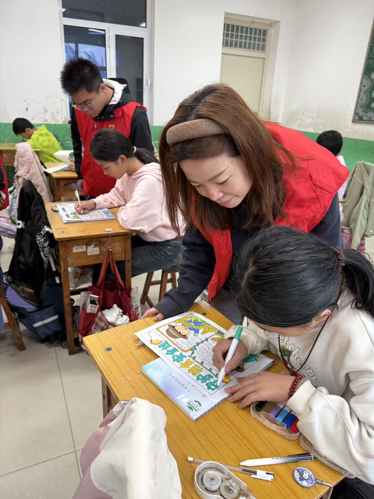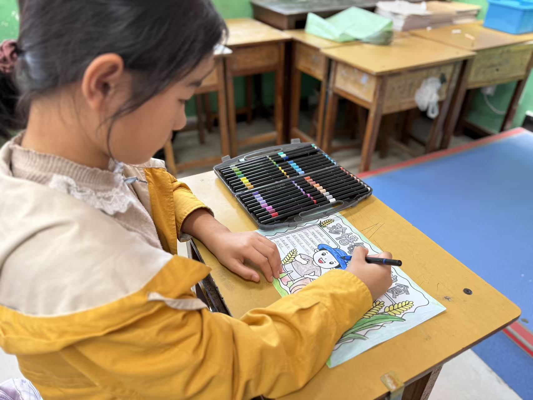 隨后的手抄報創(chuàng)作環(huán)節(jié),學(xué)生們拿出畫筆、彩紙,充分發(fā)揮想象力與創(chuàng)造力,圍繞“糧食安全”主題進行創(chuàng)作。有的以“節(jié)約糧食,從我做起”為主線,畫出浪費糧食的警示場景與節(jié)約小妙招;有的聚焦“守護糧食安全線”,用圖文結(jié)合的方式展現(xiàn)我國糧食生產(chǎn)成就以及當(dāng)前糧食安全面臨的挑戰(zhàn)。創(chuàng)作過程中,王集鄉(xiāng)新時代文明實踐所的黨員志愿者們穿梭其間,耐心指導(dǎo)學(xué)生們構(gòu)思內(nèi)容、搭配色彩,同時結(jié)合全球糧食危機案例、我國糧食安全戰(zhàn)略,為大家講解“為何要節(jié)約糧食”“如何守護糧安”等內(nèi)容。一幅幅色彩鮮艷、內(nèi)容豐富的手抄報,不僅是學(xué)生們藝術(shù)才華的展現(xiàn),更成為糧食安全知識的“移動課堂”。