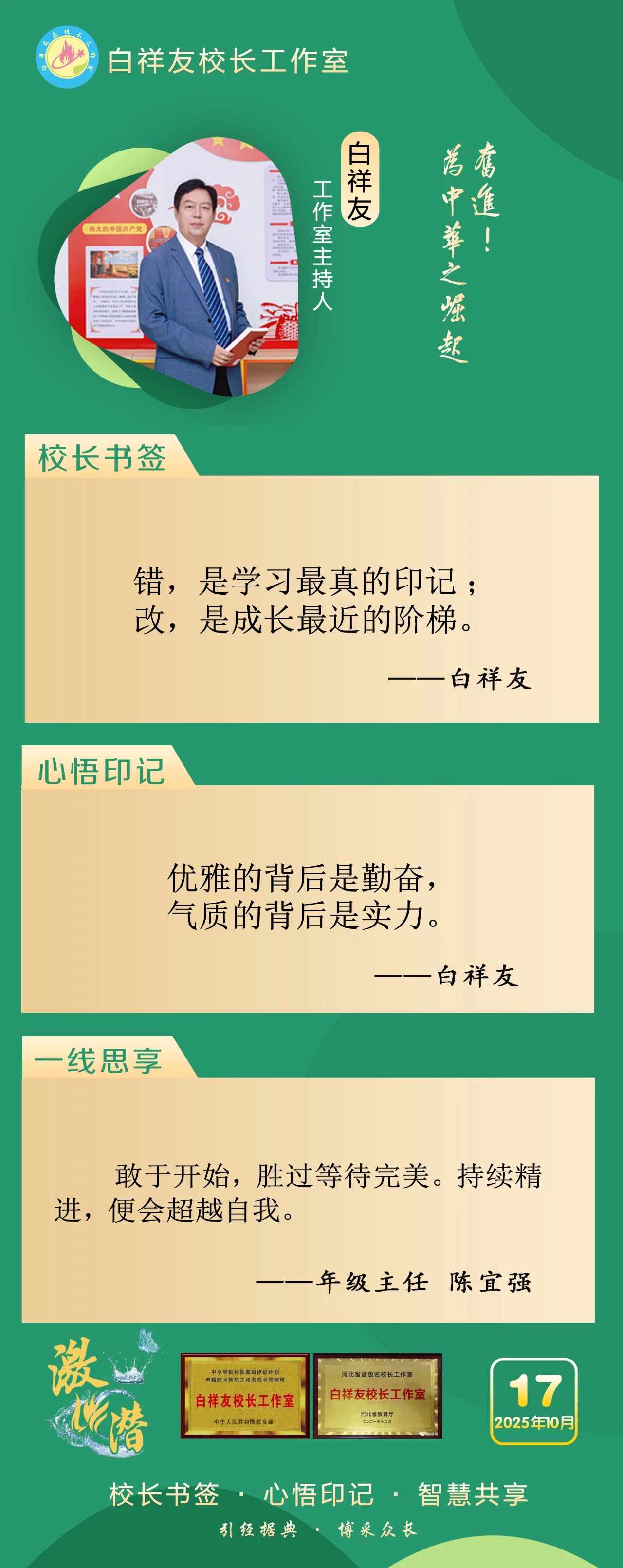 “白祥友校長(zhǎng)工作室”成立于2019年4月,是教育部“國(guó)培計(jì)劃”中小學(xué)名校長(zhǎng)領(lǐng)航工程、河北省首批名校長(zhǎng)工作室,目前省內(nèi)外成員校59所。工作室堅(jiān)持“資源共享、智慧共融、互助共贏”理念,已成為思想碰撞的交流場(chǎng),資源共享的品牌站,成果展示的輻射源。