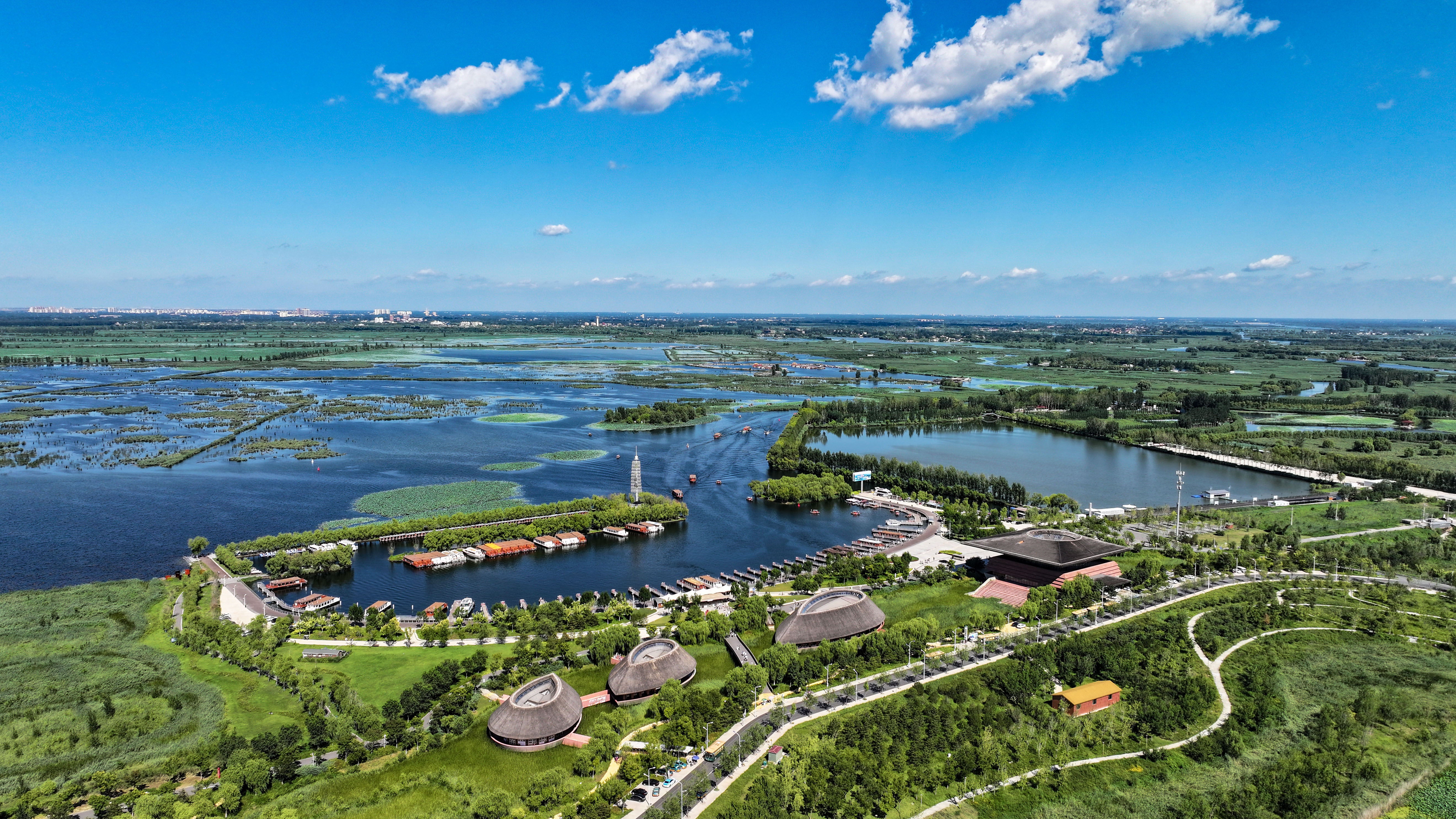 白洋淀碧波萬頃,千年秀林郁郁蔥蔥,人與自然和諧共生的生態(tài)城市畫卷徐徐鋪展。