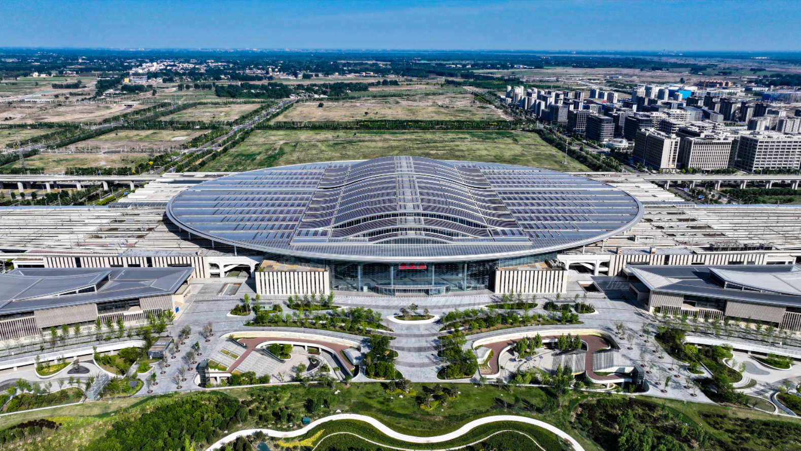 航拍雄安新區(qū)首個重大交通基礎(chǔ)設(shè)施——雄安站。雄安媒體中心王偉倩 攝