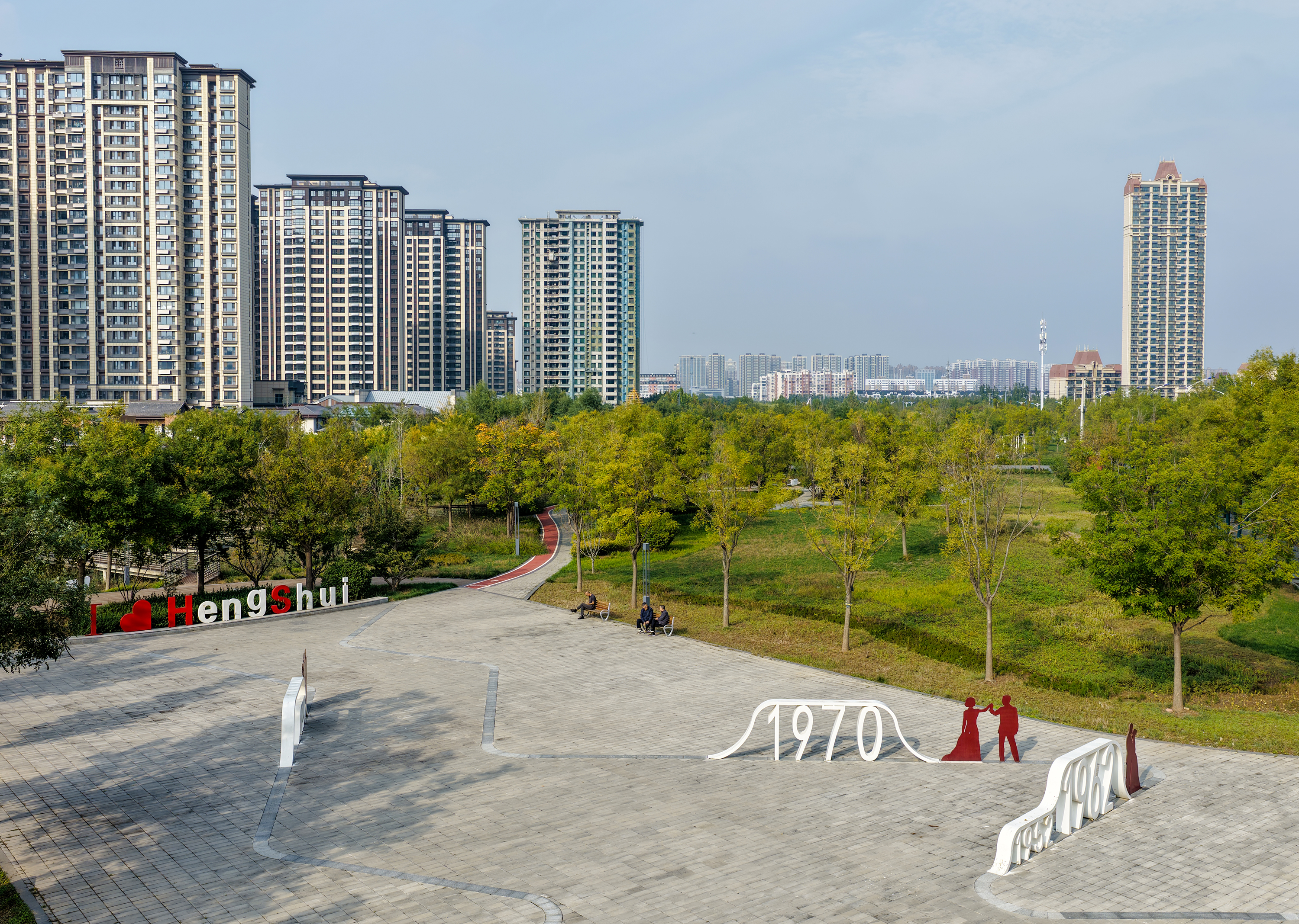 步道上,市民或悠閑漫步,或駐足拍照;休閑遮陽棚下,老人們閑話家常,孩童在旁嬉戲,“I ? Hengshui”標識處不時有游客定格笑容。清澈的渠水倒映著岸邊秋景,與轉動的風車構成愜意畫面,動靜之間滿是生活氣息。