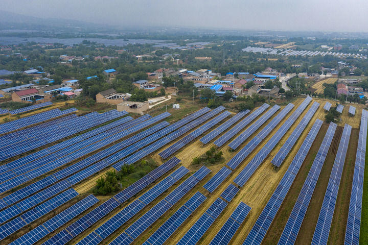 2025年6月25日在山西省運城市芮城縣夭上村拍攝的光伏基地(無人機照片)。新華社記者 楊晨光 攝