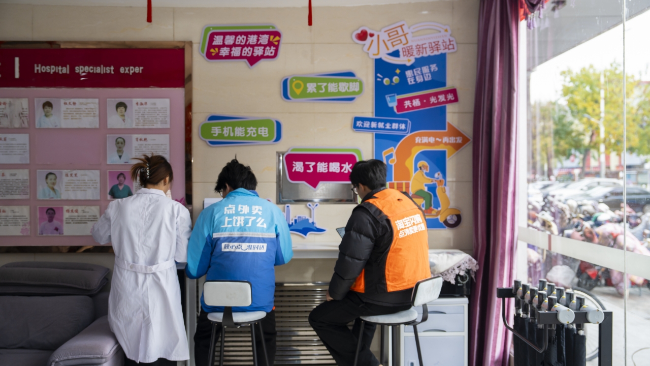 走進醫院一角的“愛心驛站”,溫馨氛圍撲面而來:整齊排列的休息長椅可供歇腳,冷熱飲水機隨時供應適宜溫度的飲用水,多功能充電插座解決設備續航難題,裝滿常用藥品的應急藥箱為突發不適提供保障。這個不大的空間,沒有繁瑣的流程,推門即可享受便利,成為新就業群體忙碌間隙的 “充電港灣”。