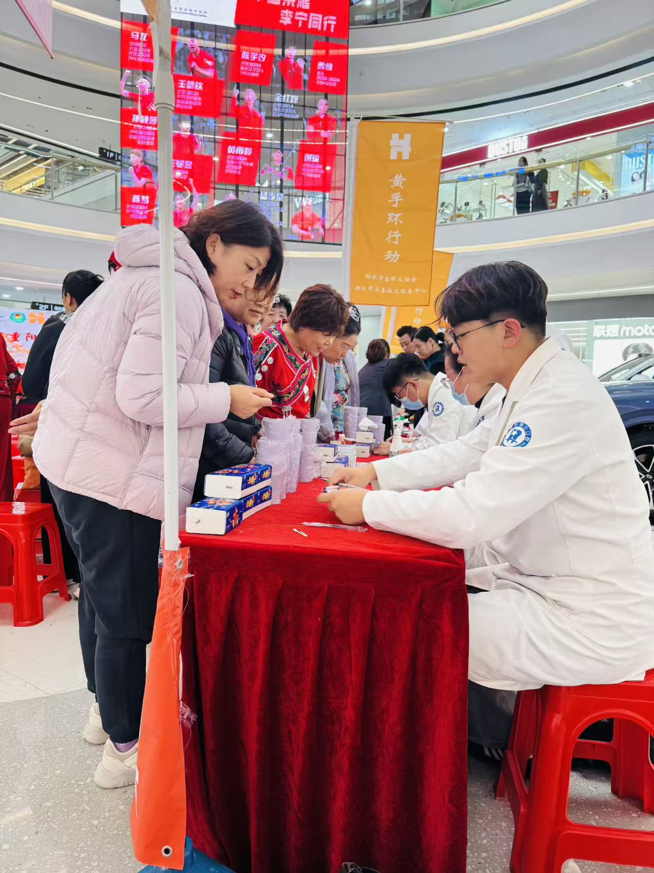啟動(dòng)儀式后,首場(chǎng)活動(dòng)——“阿爾茨海默病科普宣傳和黃手環(huán)行動(dòng)”隨即展開(kāi)。活動(dòng)由衡水市春暉義工協(xié)會(huì)承辦,邀請(qǐng)醫(yī)療專家現(xiàn)場(chǎng)講解疾病防治知識(shí),帶領(lǐng)老人進(jìn)行健腦手指操互動(dòng)。活動(dòng)同步開(kāi)設(shè)的公益集市更是亮點(diǎn)紛呈:義診臺(tái)前,醫(yī)生們耐心地為老人測(cè)量血壓、血糖,提供健康咨詢;“愛(ài)心義剪”位上的志愿者手藝嫻熟,讓老人們煥發(fā)新顏;黃手環(huán)登記發(fā)放處排起了長(zhǎng)隊(duì),為有走失風(fēng)險(xiǎn)的老人系上一份“安全保險(xiǎn)”;金融防詐騙和免費(fèi)視力檢測(cè)攤位前也圍滿了人。與此同時(shí),精彩的文藝演出同步助興,歌聲與歡笑交織,將現(xiàn)場(chǎng)氣氛推向高潮。