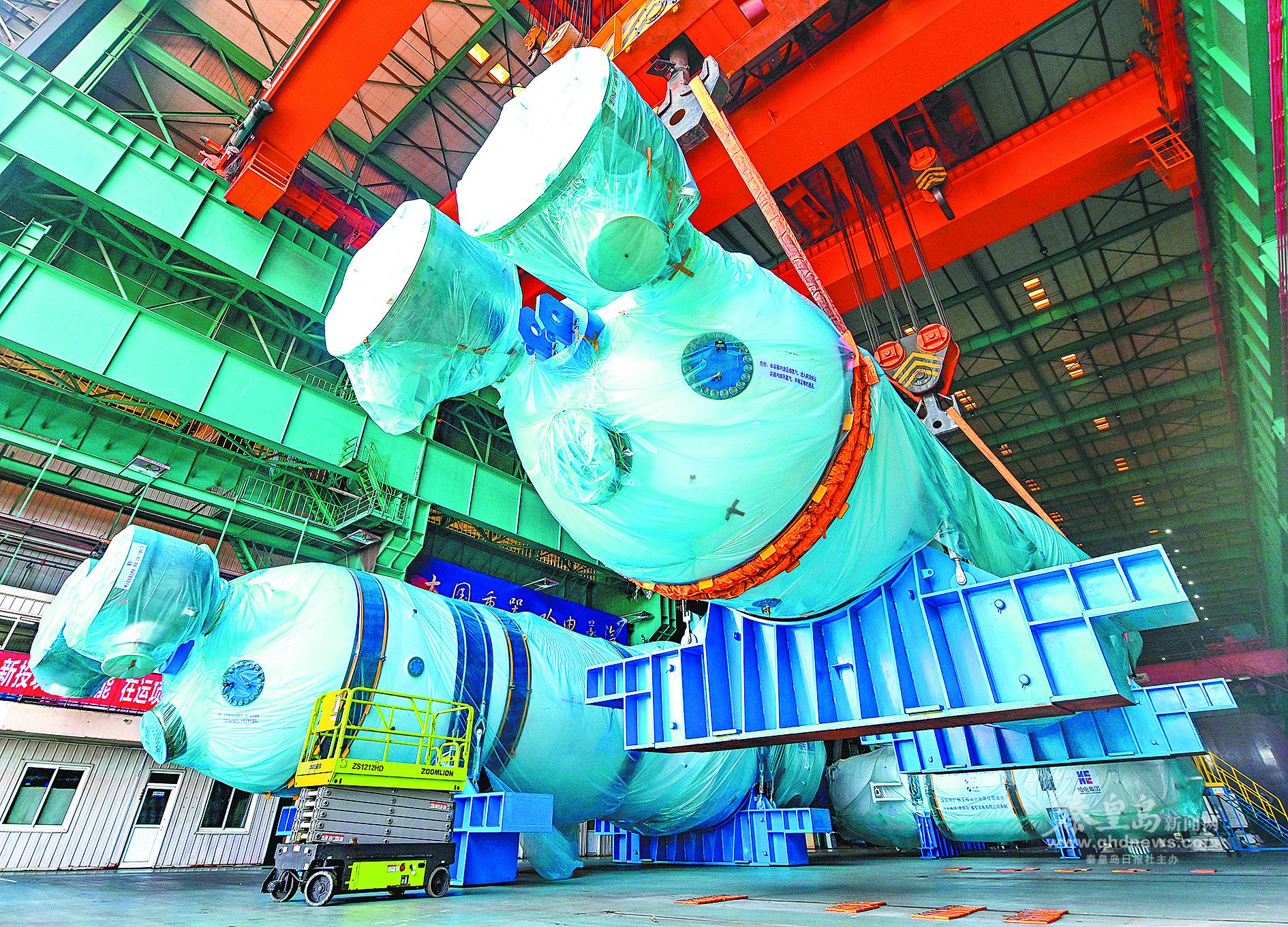哈電集團(秦皇島)重型裝備有限公司生產的三代核電CAP1000蒸汽發生器標志著我國已完全具備三代核電CAP系列蒸汽發生器批量化制造能力。記者 李鐸 攝