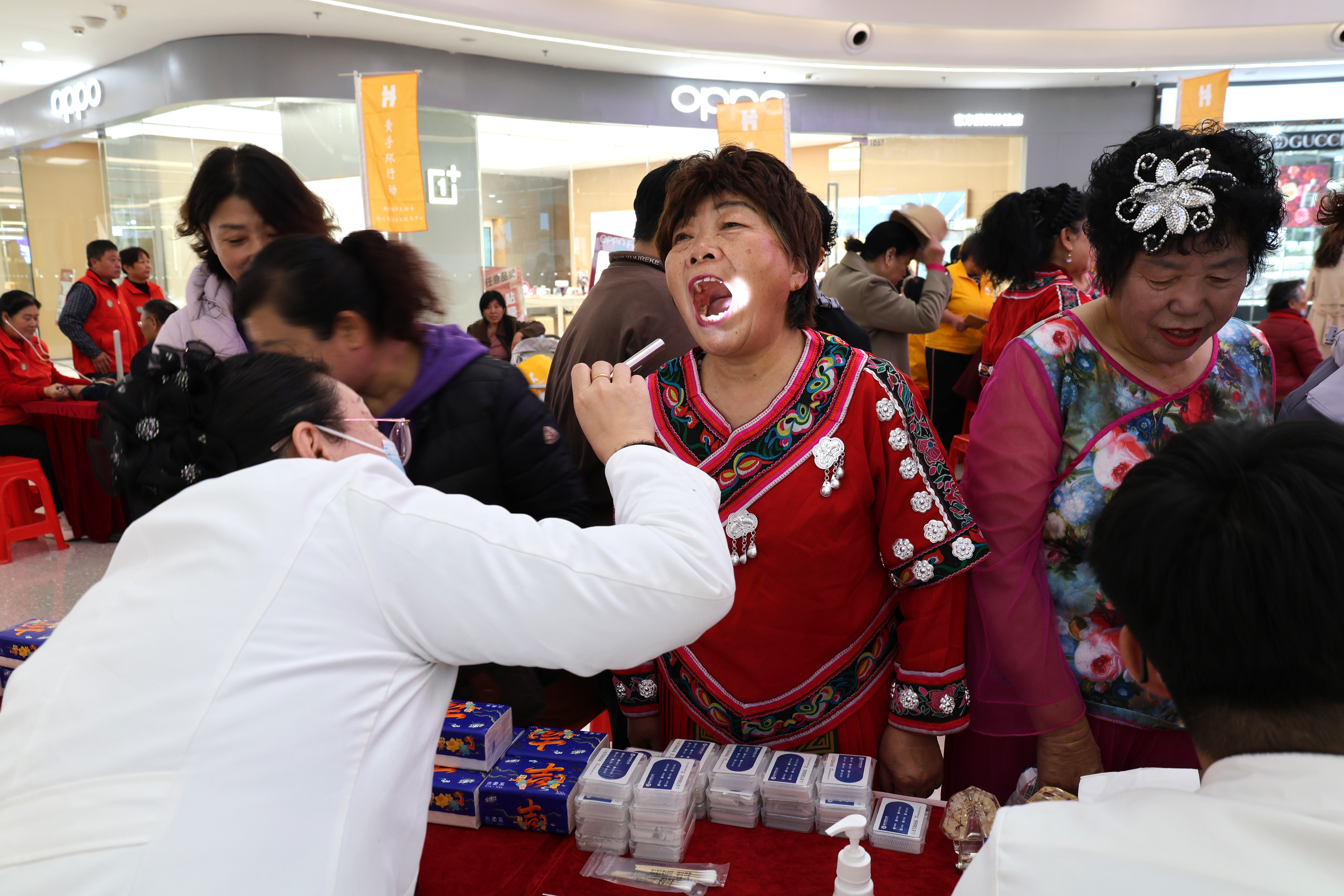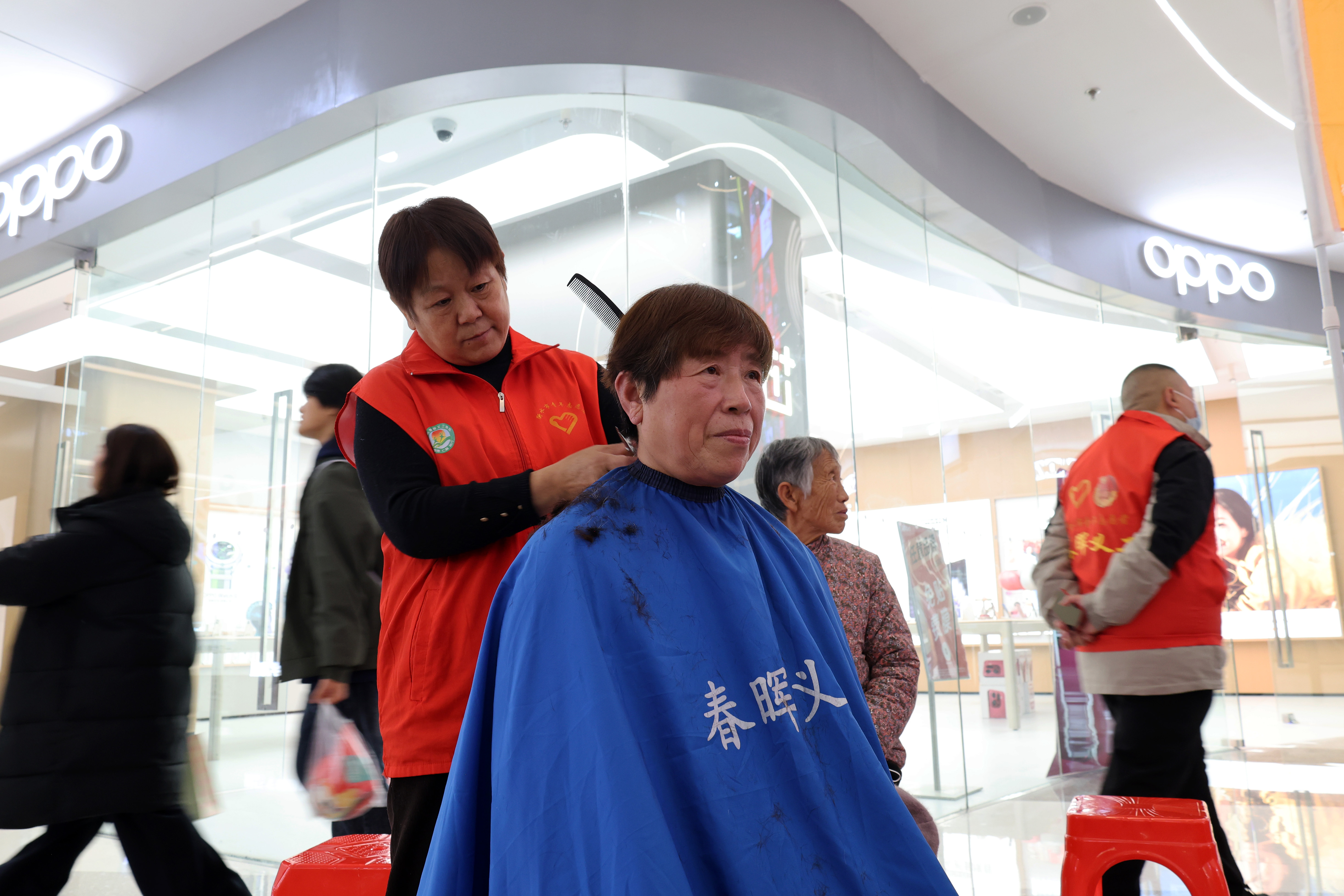 義診臺前,醫生耐心測血壓、答疑問;“愛心義剪”位上,志愿者嫻熟修剪,讓老人煥新顏;黃手環登記發放處排起長隊,工作人員核對信息后,將印有家屬聯系方式的黃手環遞到老人手中,系牢“安全保險”;金融防詐騙、免費視力檢測攤位前,志愿者結合案例講防范技巧,守護老人“錢袋子”。