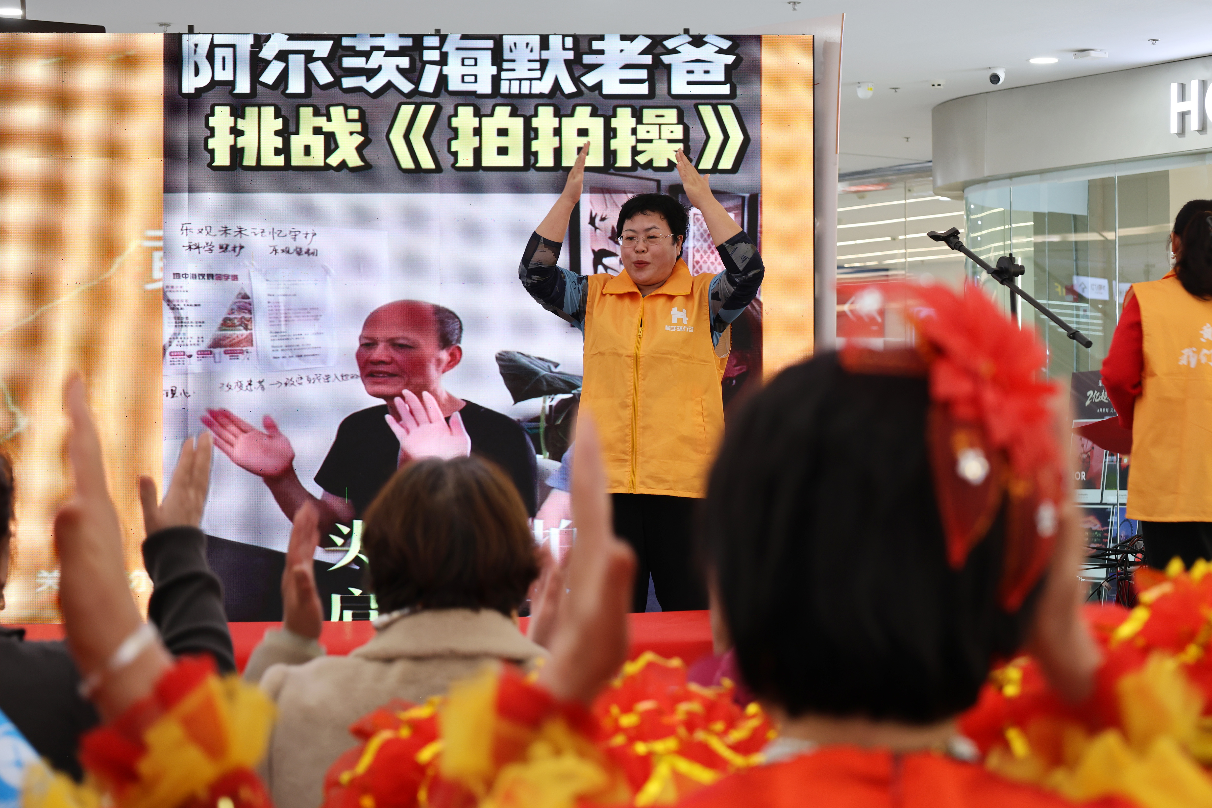 當天下午,活動現場醫療專家先為老人們講解老年疾病防治知識,隨后義工站上舞臺,帶領大家做健腦手指操。“跟著我做‘小貓爪’,一步步來!”老師邊示范邊講解,臺下老人紛紛抬手跟隨,動作稍緩的老人身旁,志愿者立即俯身輕聲指導。指尖舞動間,老人們笑容綻放,現場滿是溫馨。