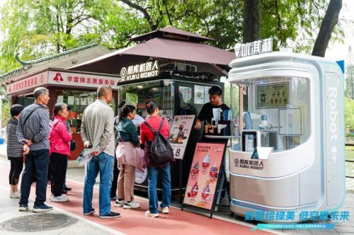 逛累了?在“便民服務驛站”,多才多藝的機器人店員已就位。萌萌的爆米花機器人“噗”的一聲,獻上一份香甜;酷酷的咖啡機器人則在60秒內,完成從取杯到拉花的精彩演繹。登上全無人駕駛小巴,任它載著您在林蔭道上悠然穿行。