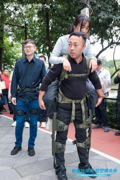 能量爆發:看護林員身著外骨骼,在越秀公園百步梯負重登山奪標,直觀感受科技賦能的震撼力量。