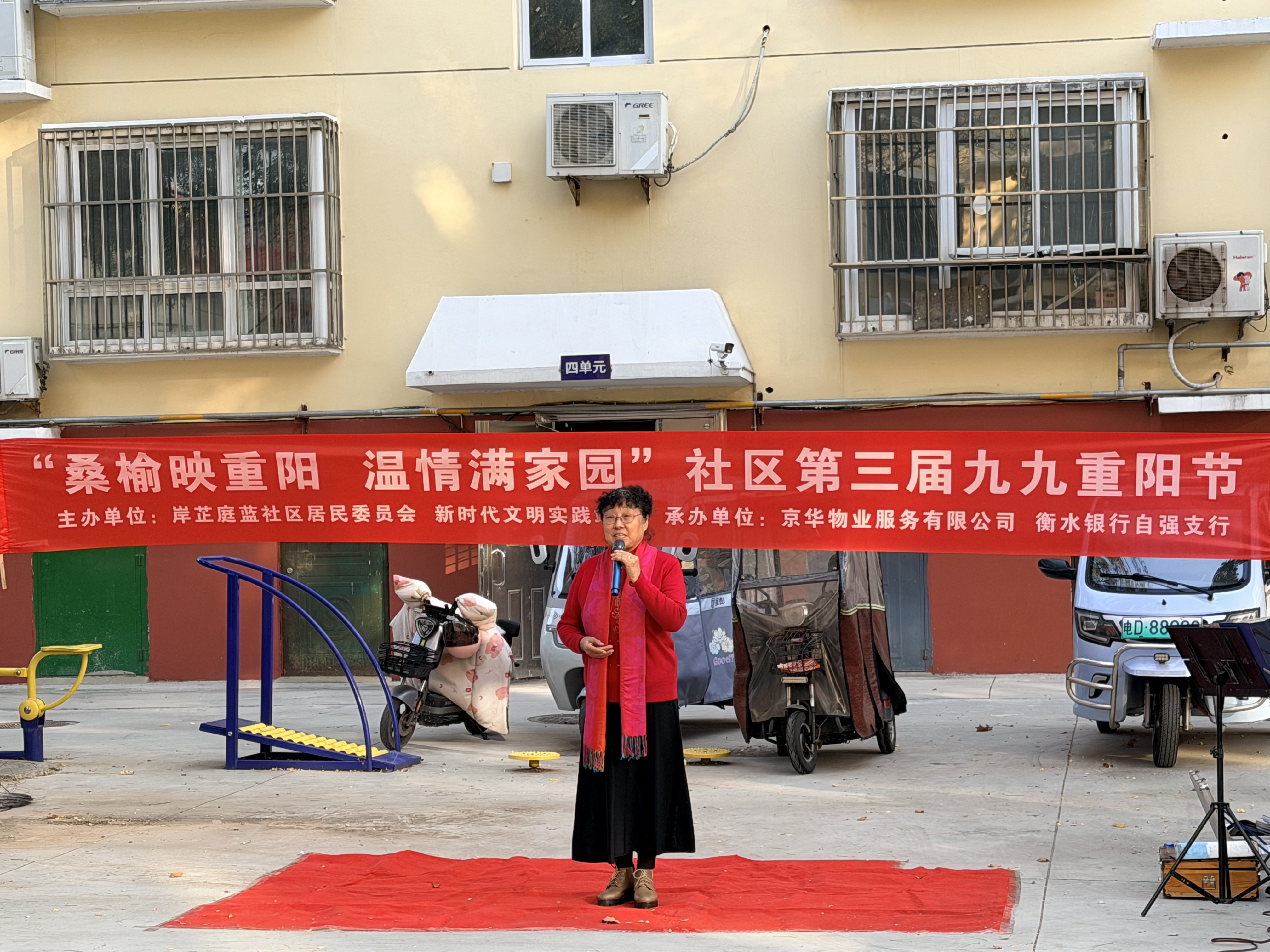 10月27日,桃城區中華大街街道岸芷庭藍社區門前廣場上歡聲笑語,暖意融融。一場以“九九重陽·情暖金秋”為主題的重陽節敬老活動在這里舉行,社區老年人歡聚一堂,共度溫馨佳節。