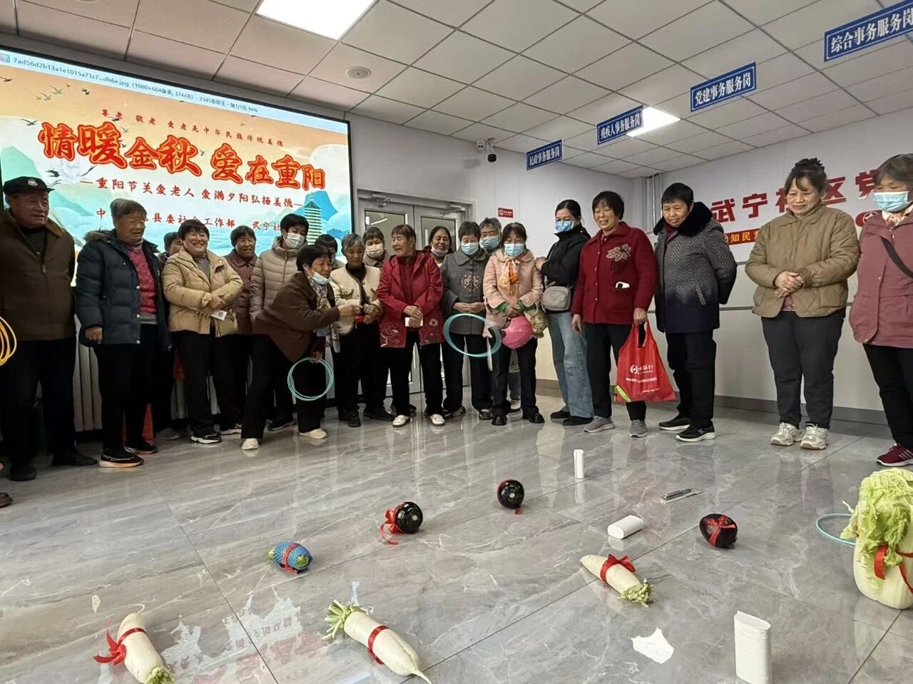 10月28日,在充滿溫情的重陽節來臨之際,武邑縣委社會工作部積極指導,衡水銀行武邑支行與武寧社區精心策劃并開展重陽節主題活動,以趣味互動與走訪慰問雙舉措,為轄區老年居民送上濃濃關懷與深深敬意。