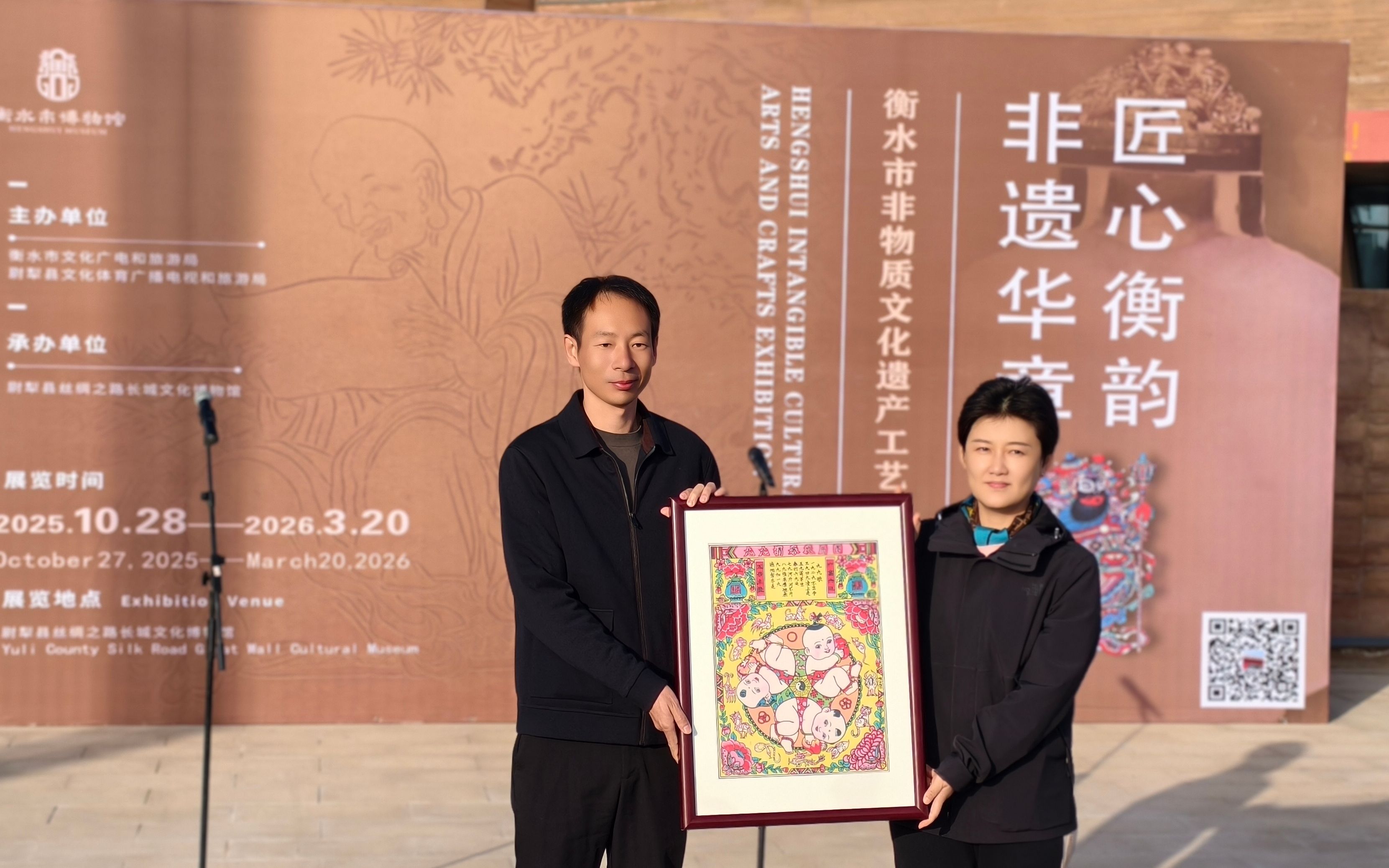 開幕儀式上,衡水市文化廣電和旅游局黨組書記、局長劉葉代表衡水市向尉犁縣捐贈了34幅國家級非遺武強年畫,彰顯了兩地文化共享的深情厚誼。此次活動不僅豐富了群眾文化生活,也為兩地合作注入了新活力。本次展覽將持續至2026年3月20日,通過工藝美術精品展示,進一步推動衡水與新疆的文化互動,助力援疆工作深入開展。