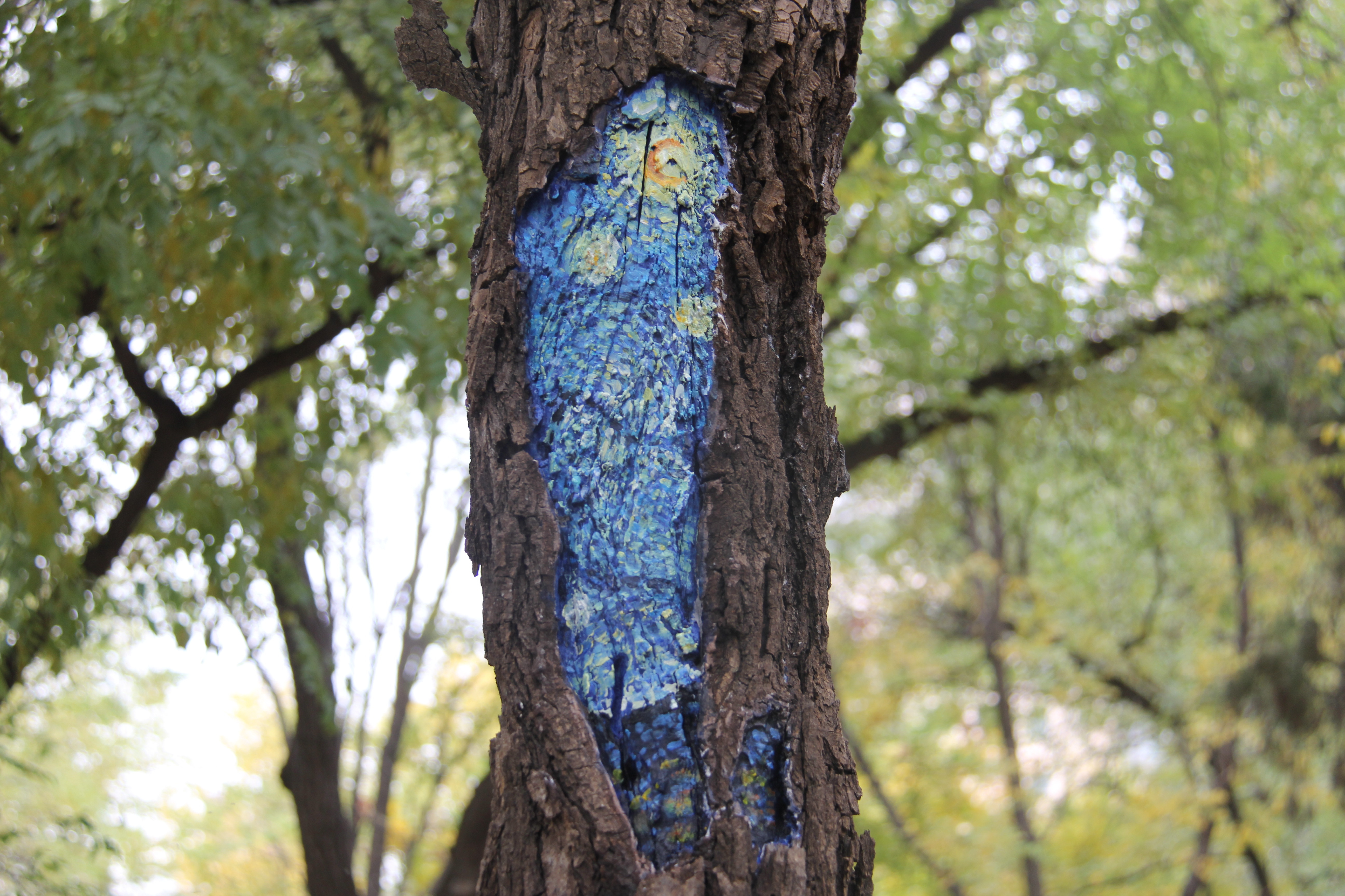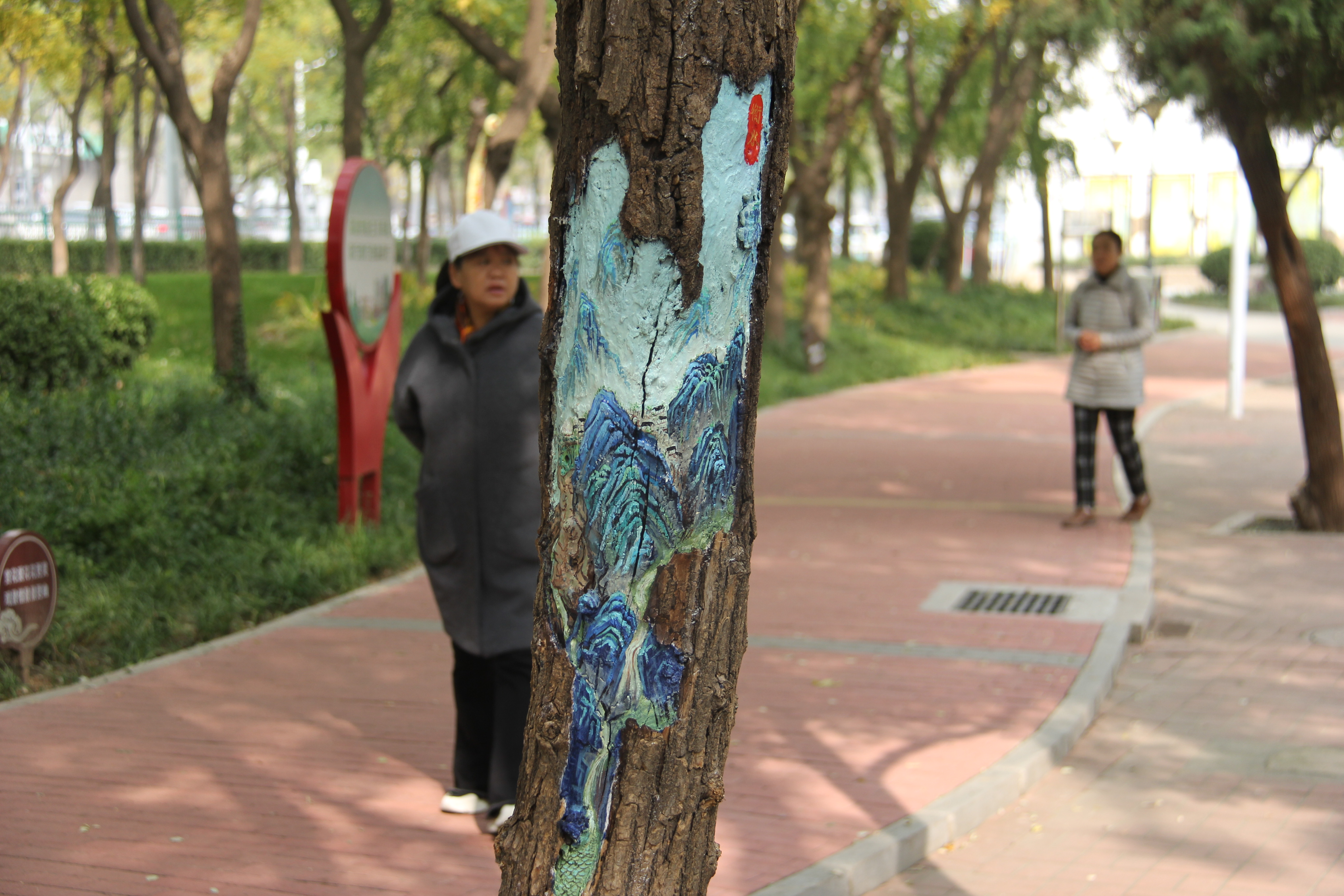 “在進(jìn)行彩繪之前,我們經(jīng)過多次實地考察,根據(jù)每個樹洞不同的形狀、大小和位置,巧妙構(gòu)思,將自然元素、傳統(tǒng)文化、現(xiàn)代圖案等元素融入創(chuàng)作中,使得每一個樹洞都變成獨一無二的藝術(shù)作品。”志愿者劉文豪介紹。現(xiàn)場圍觀的市民關(guān)心志愿者們所用顏料的環(huán)保問題,對此,志愿者孟凡濤一邊調(diào)色一邊耐心地解釋說:“作畫選用的無甲醛丙烯顏料安全環(huán)保,不僅不會傷害樹木,還具有一定的保護(hù)膜功能,可起到修繕、遮蓋、保護(hù)、防止創(chuàng)口水分流失的作用。而且效果持久,至少可以保存2年。”