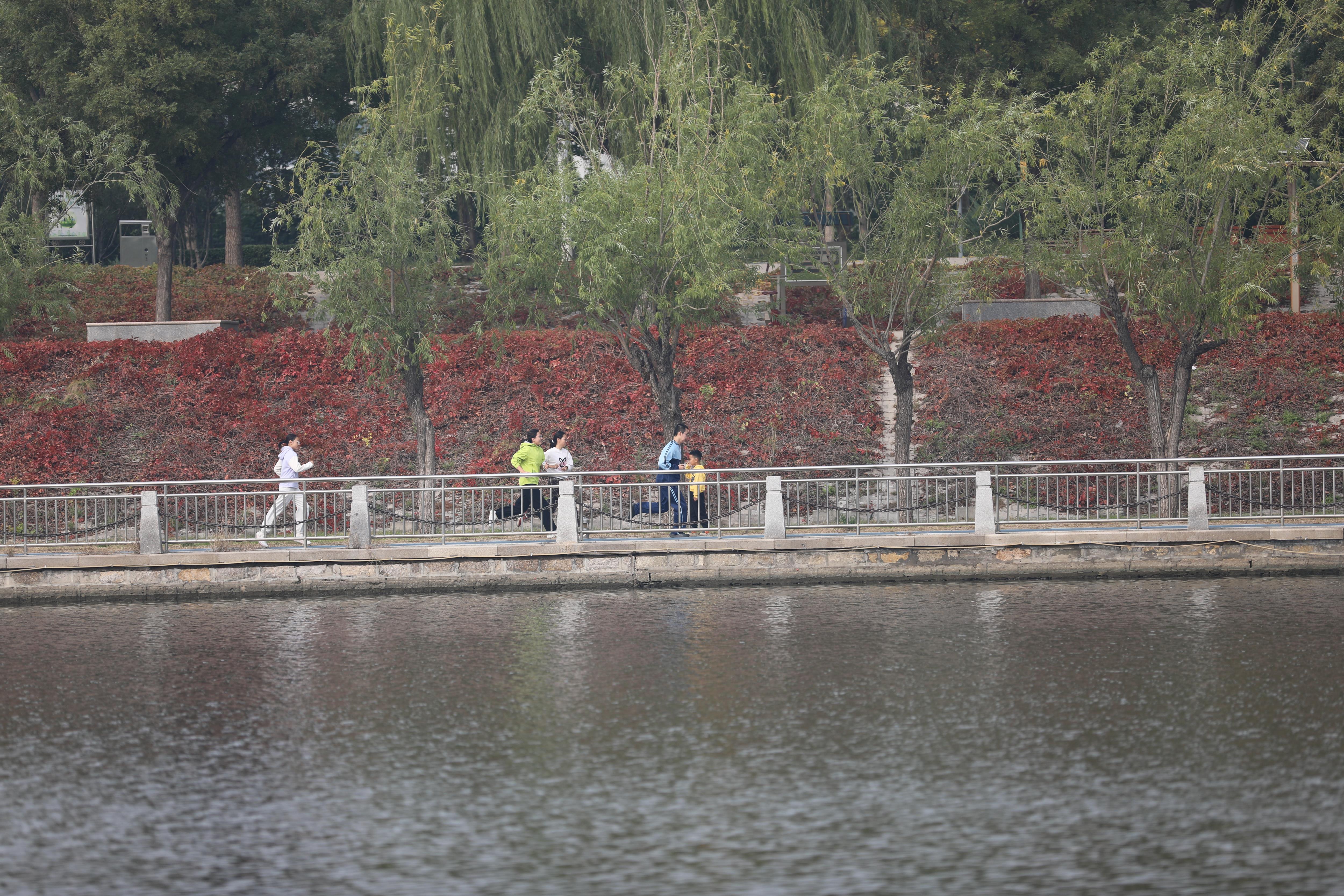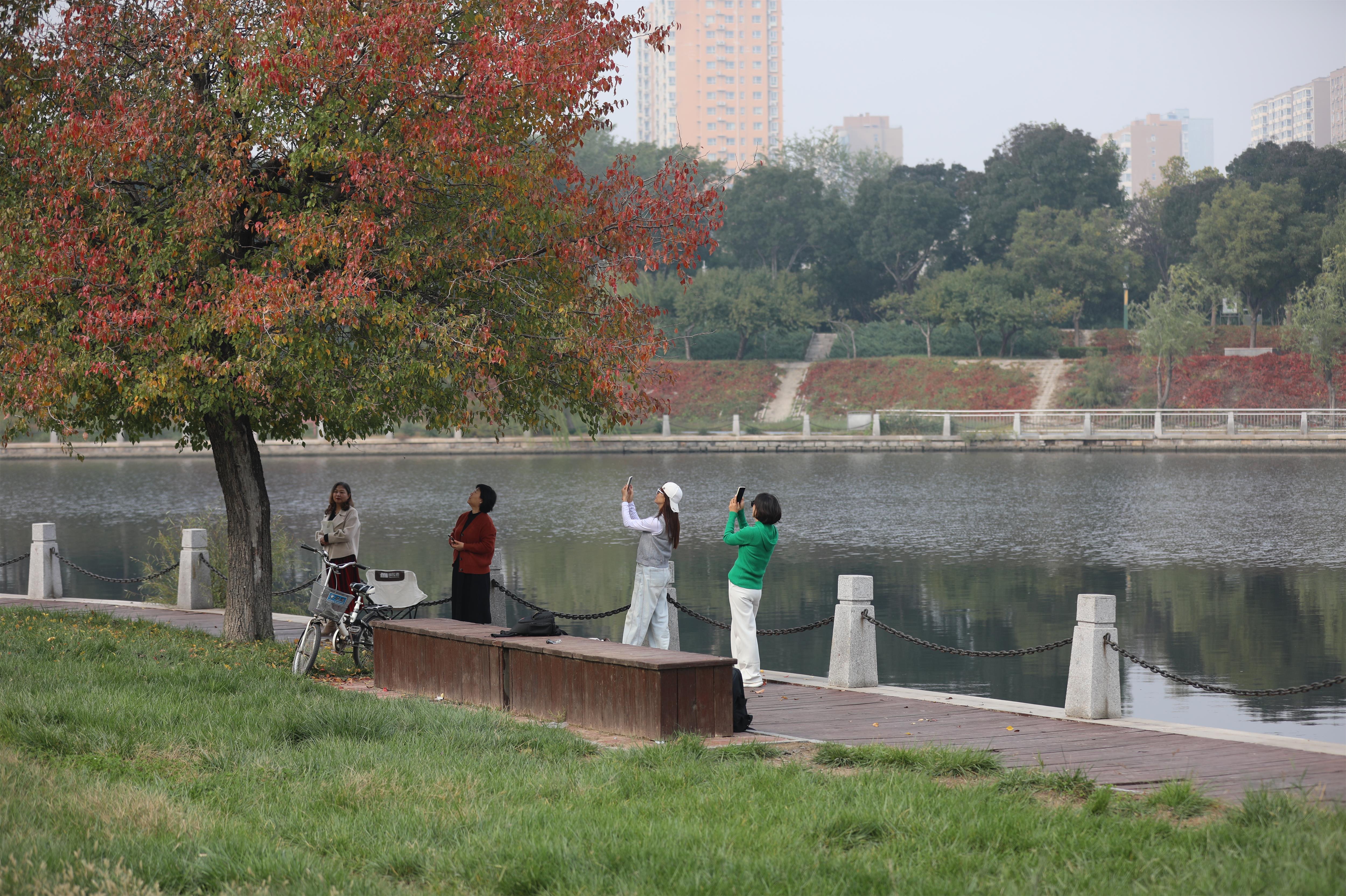 河畔的休閑氛圍同樣濃厚。市民們三五成群,或在健身器材上鍛煉身體,或沿河岸漫步賞景、拍照留念,或帶著孩子在草坪上玩耍,神情悠然自得,盡顯愜意。“特意過來拍照,你看這紅的爬山虎、黃的楊樹,映著河水特別出片,發朋友圈好多人問地址呢!”手持相機的市民王女士笑著展示剛拍攝的照片。帶著孫子散步的李大爺也感慨道:“現在河邊環境越來越好,秋天來這兒曬曬太陽,看看風景,孩子還能在步道上跑跑,比在家待著舒服多了。”