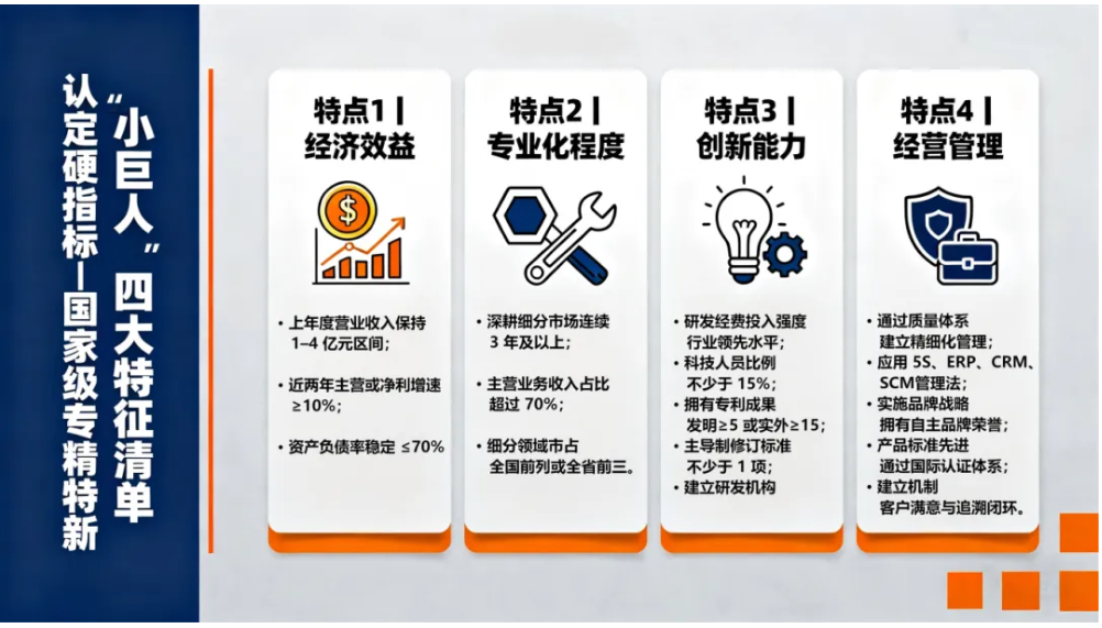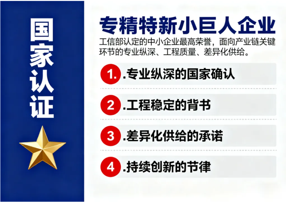 國家級專精特新“小巨人”企業(yè)是由工業(yè)和信息化部組織認(rèn)定的中小企業(yè)最高榮譽(yù),2025年認(rèn)定通過率不超過25%,代表企業(yè)在國家產(chǎn)業(yè)鏈關(guān)鍵環(huán)節(jié)中具備突出的專業(yè)化、精細(xì)化、特色化和創(chuàng)新能力。認(rèn)定工作由工信部統(tǒng)一標(biāo)準(zhǔn)、統(tǒng)一程序組織實(shí)施,并實(shí)行動態(tài)管理與定期復(fù)核,確保“小巨人”企業(yè)始終保持技術(shù)領(lǐng)先、質(zhì)量穩(wěn)定與行業(yè)引領(lǐng)。