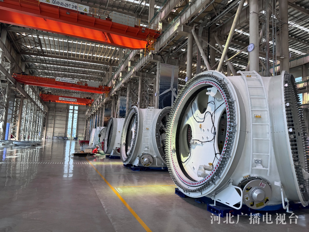 今年7月,金風科技秦皇島北方海上風電產業基地一期總裝廠項目建成投產,金風科技秦皇島總裝廠廠長湯建華介紹,基地目前主要生產8MW陸上風電機組,同時已經具備生產14-20MW海上機型的能力。