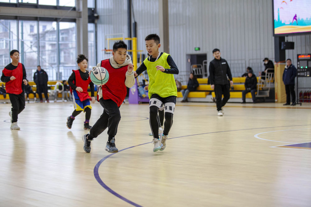 10月29日,青少年在邯鄲體育公園室內場館進行籃球訓練。(受訪單位供圖)