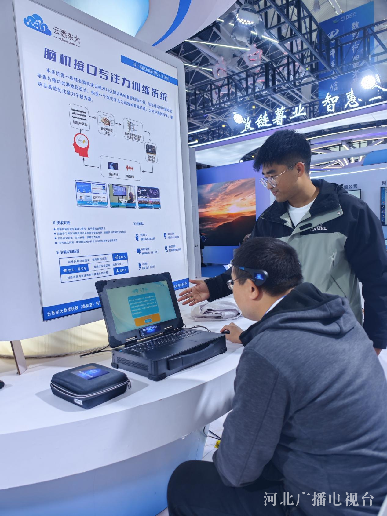 更前沿的探索,已經在賦能人類自身的領域展開。像隔空控物,這個科幻片當中的“超能力”,如今已經是腦機接口技術正在實現的典型功能。在不久前結束的2025中國國際數字經濟博覽會上,云悉東大數據科技(秦皇島)有限公司帶著全新研發的腦機接口專注力訓練系統亮相。