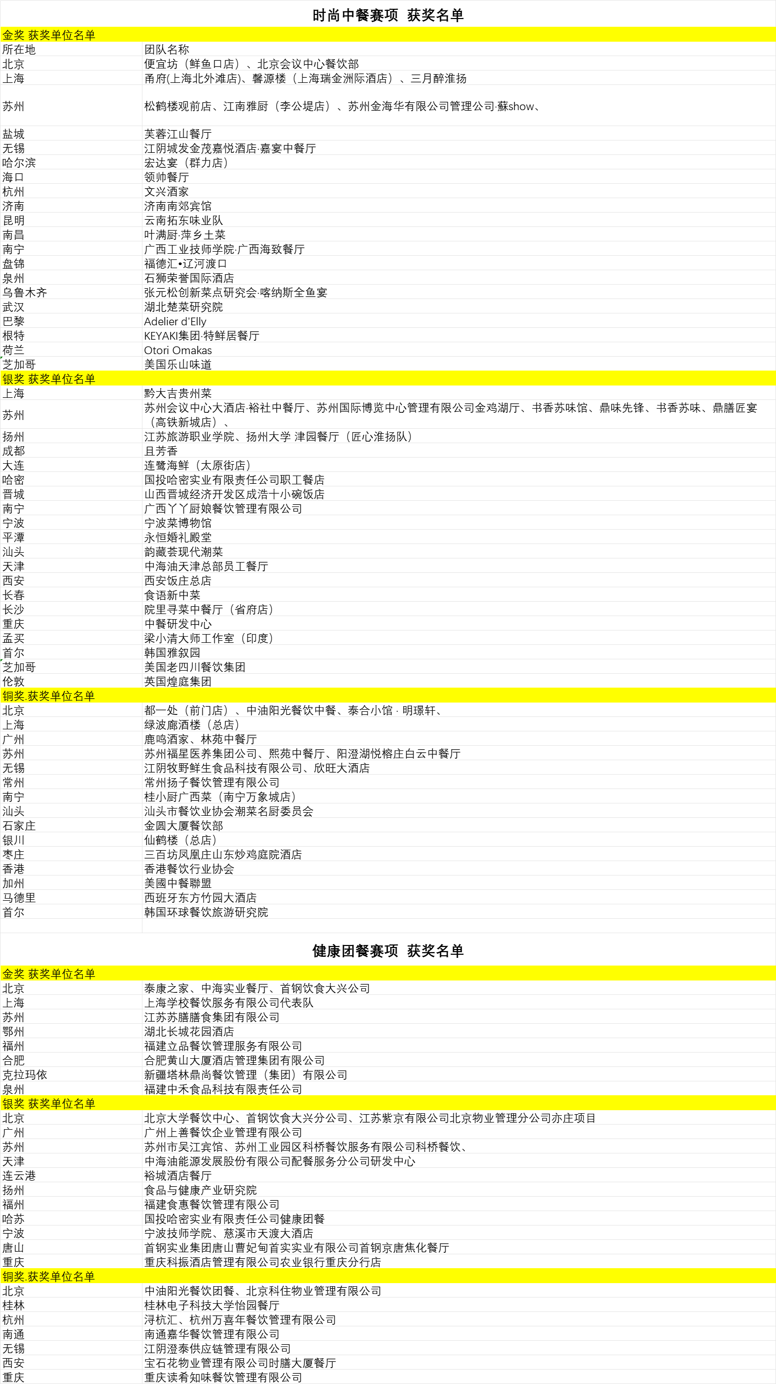 10月17日至18日,蘇州國際博覽中心迎來了一場中餐界的“奧林匹克盛會”——2025中餐廚藝世界錦標(biāo)賽。經(jīng)過評委團(tuán)嚴(yán)格評審,最終在“時尚中餐”賽項(xiàng)中,25家中餐廳脫穎而出榮獲金獎,26家獲得銀獎,21家獲得銅獎;在“健康團(tuán)餐”賽項(xiàng)中,10家團(tuán)餐企業(yè)斬獲金獎,15家獲得銀獎,9家獲得銅獎。獲得時尚中餐金獎的團(tuán)隊(duì)包括松鶴樓觀前店、江南雅廚(李公堤店)、芙蓉江山餐廳、北京會議中心餐飲部、文興酒家、便宜坊(鮮魚口店)等知名餐飲機(jī)構(gòu)。