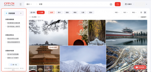 本次升級增強了搜索能力,不僅實現了創意素材與資訊內容的聯動切換,更向CFP用戶開放了創意圖片“靈感拓展”功能,并優化了圖片搜索的排序算法。
