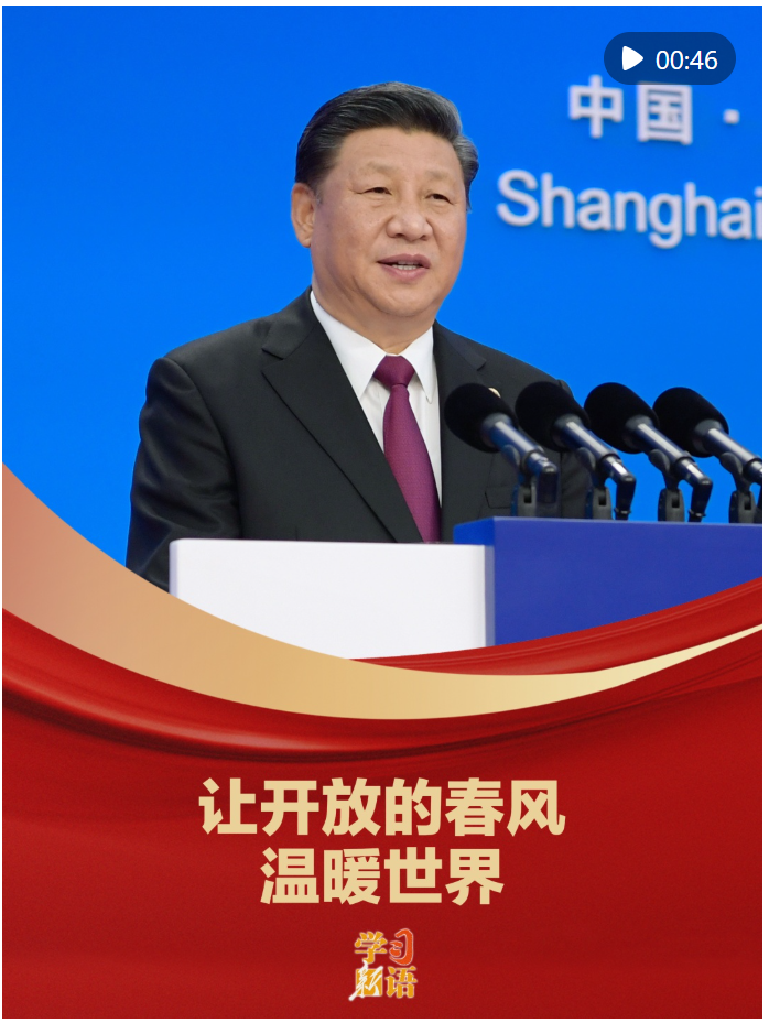 習近平主席曾在進博會上,用三個“不會變”,詮釋了中國與世界共享機遇、互利共贏的胸懷與擔當,展示了堅定不移的開放決心。進博之約向世界許下中國之諾:中國愿同各國一道,共建開放型世界經濟,讓開放的春風溫暖世界!