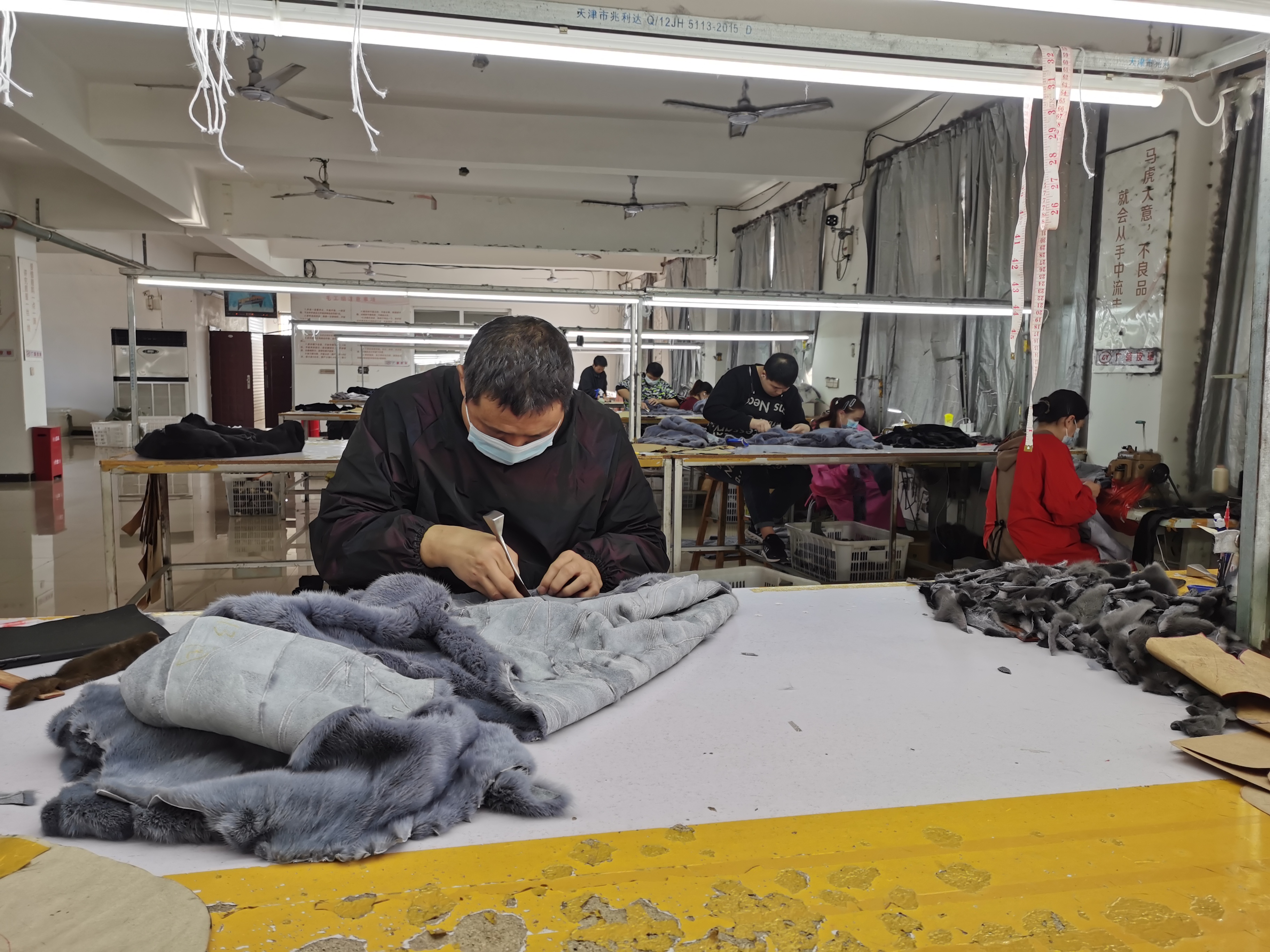 達盛源皮草制品有限公司的車間內,機器轟鳴,工人們正忙著為即將到來的銷售旺季趕制新款皮草服裝。在產品展示區,一件件融合了現代設計與傳統工藝的皮草服飾陳列其間,光澤柔順、款式新穎。