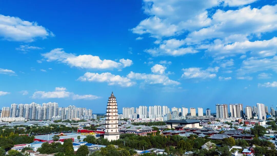 藍(lán)天白云映襯下的定州古城。如今,“定州藍(lán)”已成為常態(tài)。記者白永民攝