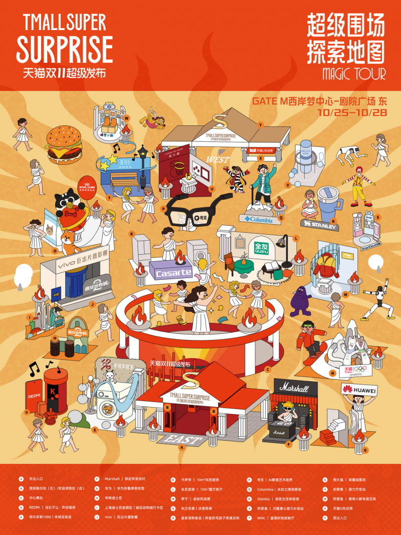 當10月28日的“超級發布之夜大秀”在線上引爆關注時,早在三天前,一場同樣精彩的線下體驗就已悄然開啟。在上海西岸劇院廣場,那座以古希臘美學為靈感構建的天貓「超級品牌POP圍場」,正以其獨特的儀式感,迎接每一位前來探索的消費者。