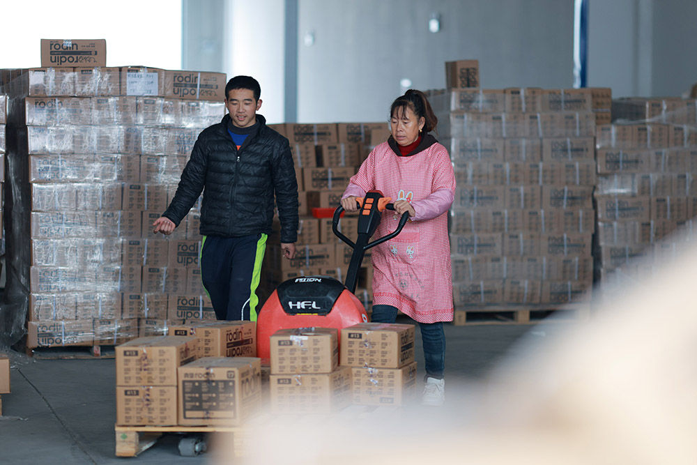 11月6日,在內丘縣智慧云倉,工作人員在裝運貨物。