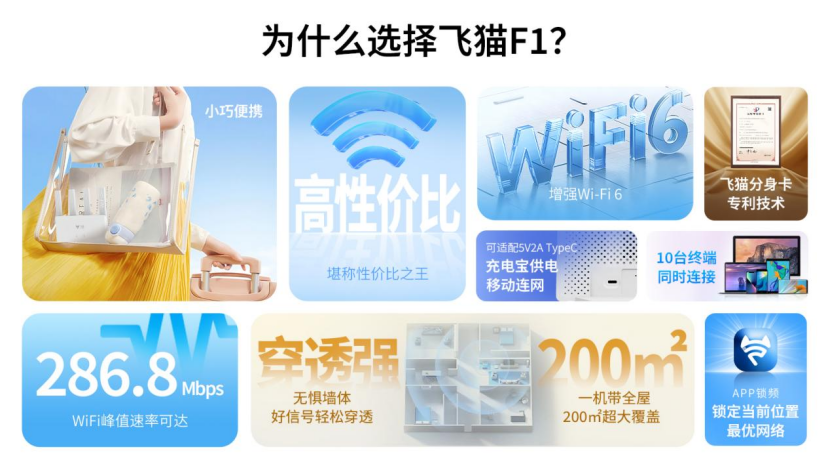 很多人初見飛貓 F1 會疑惑:“這么輕巧,能有像傳統家里路由那樣的信號嗎?” 實際體驗后會發現,你就會發現它完全繼承了家庭路由器的核心優勢。