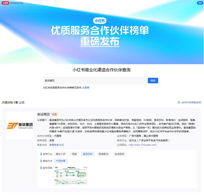 作為全域增長的先行者,小紅書代理商叁柒集團(tuán)早已將小紅書營銷置于品牌整體生意增長的戰(zhàn)略高度。他們提出的“站內(nèi)精細(xì)化種草,站外多渠道收割”方法論,已在多個(gè)知名品牌合作中得到成功驗(yàn)證。