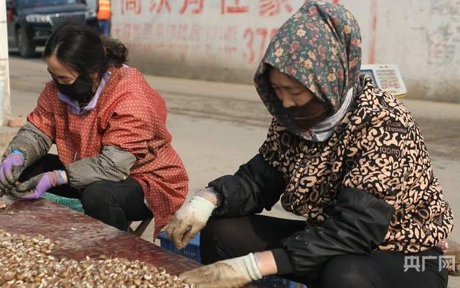 村民正在收拾挑選捕撈上來的海貨(央廣網見習記者 安適存 攝)