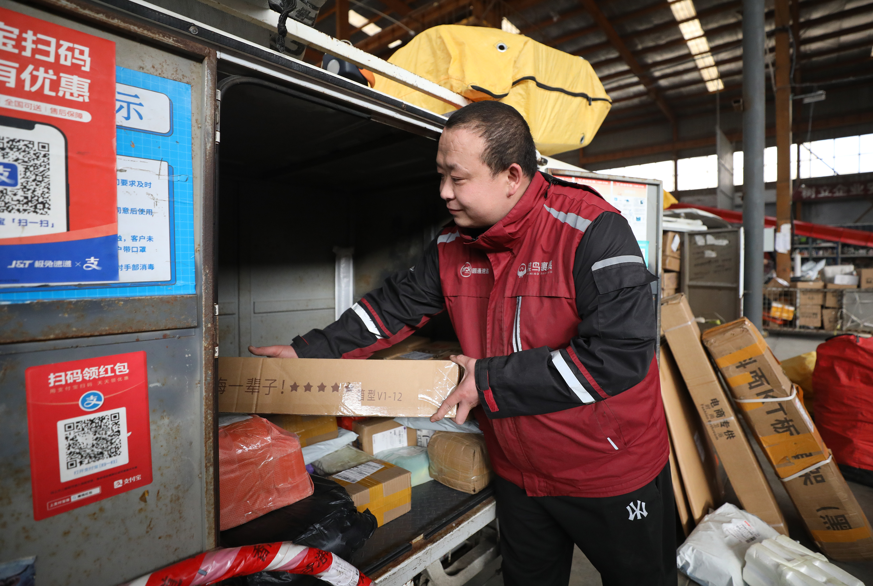 圓通速遞衡水桃城分公司內,快遞員石楊正在進行快遞碼放。