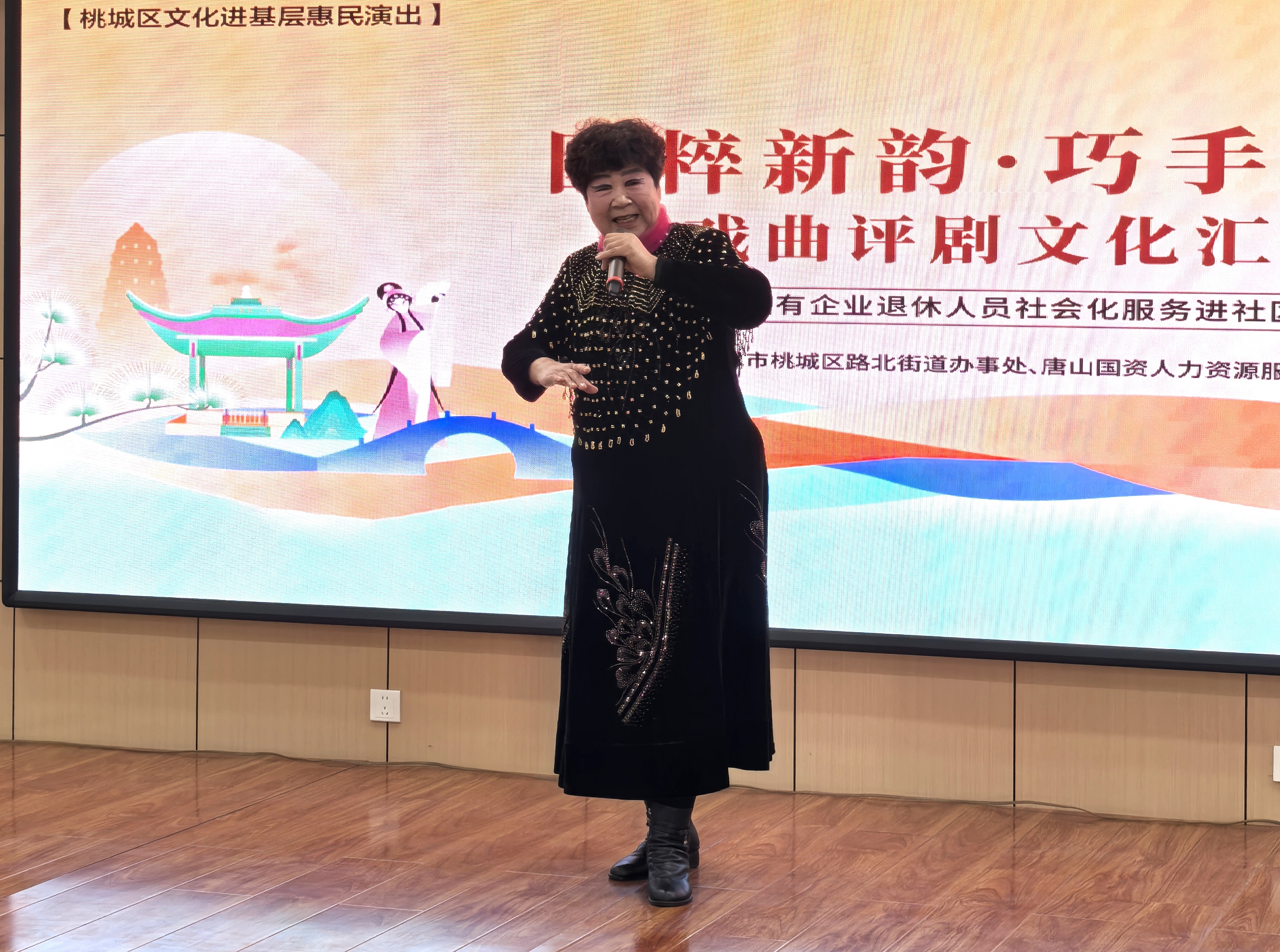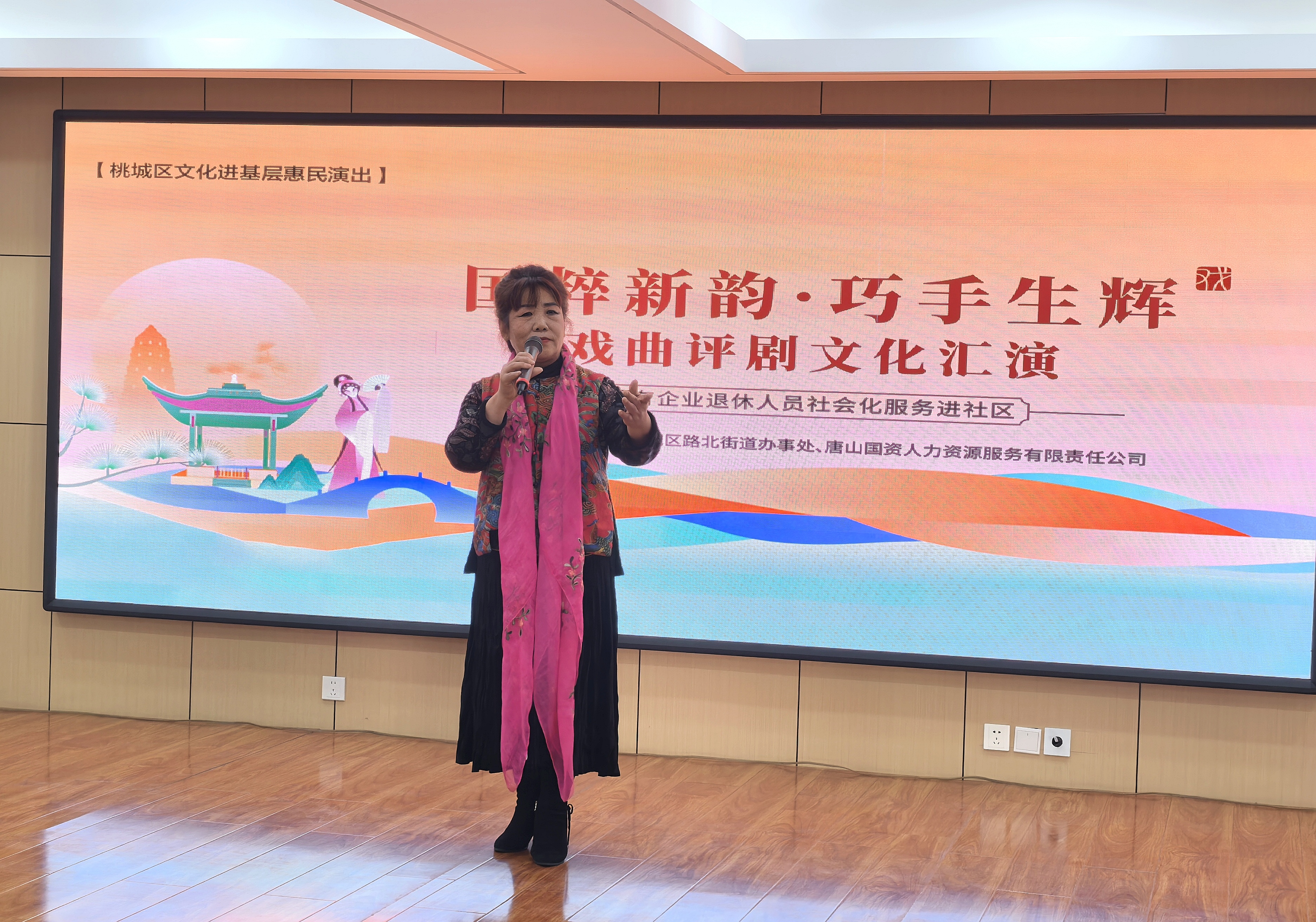 11月11日下午,衡水市桃城區路北街道辦黨群服務中心二層熱鬧非凡,由路北街道辦事處與唐山國資人力資源服務有限責任公司聯合主辦的“國粹新韻?巧手生輝”戲曲評劇文化匯演活動在這里舉行,轄區內的國有企業退休人員齊聚一堂,共赴一場戲曲與溫情交織的文化盛宴。