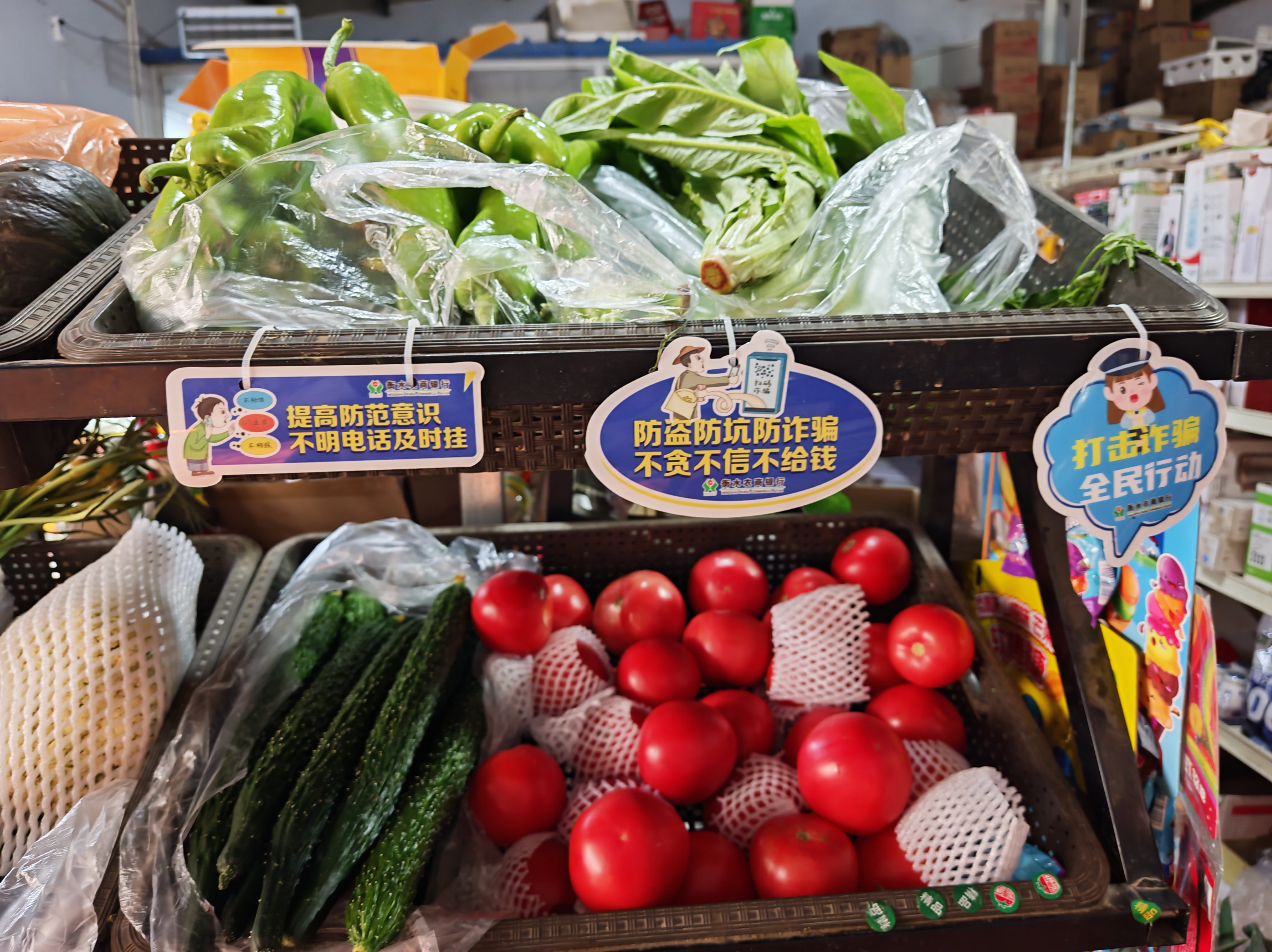 衡水農商銀行在“反詐便民店”貨架上捆綁的反詐宣傳標語。