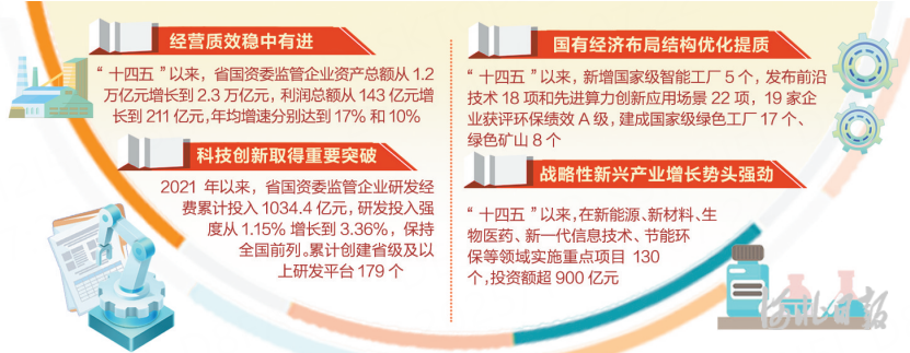 “十四五”時(shí)期,省國(guó)資委有序推進(jìn)29家企業(yè)戰(zhàn)略性重組和專業(yè)化整合,涉及資產(chǎn)5274億元,推動(dòng)國(guó)有經(jīng)濟(jì)布局結(jié)構(gòu)不斷優(yōu)化。