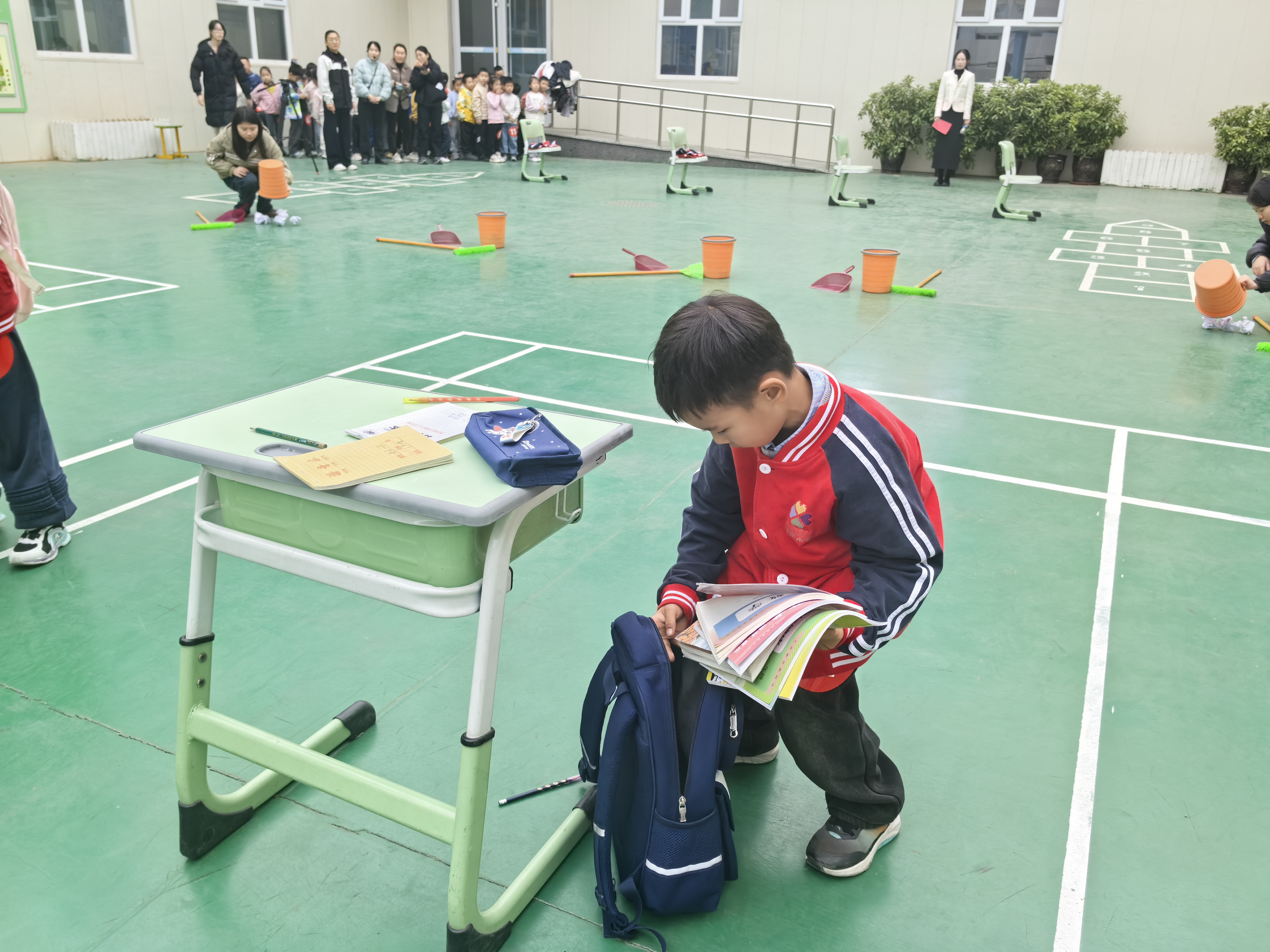 最后一項“整理書包”環節更是考驗孩子們的條理性。書本、作業本、文具等物品雜亂地擺放在桌面上,小選手們迅速按照大小、種類分類整理,將書本整齊放入書包,文具歸置到筆袋中。完成后,背好書包的孩子們高高舉起小手,臉上滿是認真又驕傲的神情。評委老師根據完成速度、整潔度、規范性等標準進行綜合打分,現場不時響起陣陣掌聲。