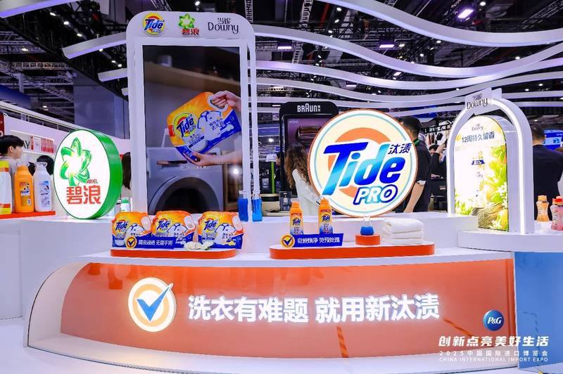 11月,第八屆中國國際進口博覽會于國家會展中心(上海)盛大開幕,寶潔公司以“創新點亮美好生活”為參展主題,打造了一個充滿科技感與生活溫度的展臺。寶潔織物護理部旗下汰漬、碧浪、當妮品牌攜兩大劃時代超級單品——洗衣免搓粉與洗衣原液亮相,不僅提供了針對不同洗衣場景的精準解決方案,更全面展現了汰漬、碧浪、當妮致力于以“真洞察、真創新、真品質”推動行業升級、重塑中國消費者洗衣體驗堅定承諾。