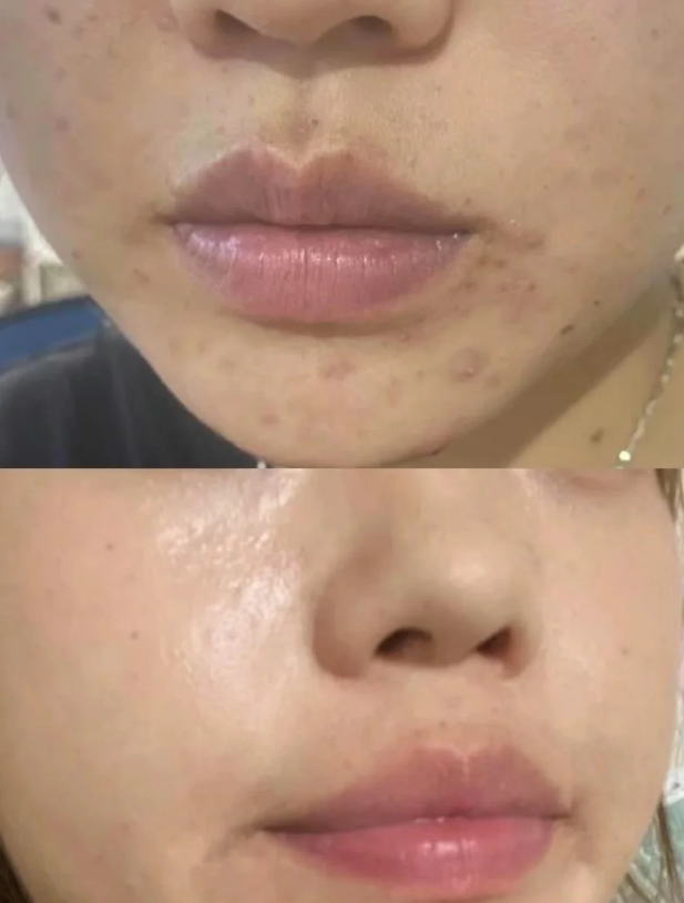 ?長期使用反饋:500 例用戶實測 3 個月,混合痘印區域(紅痘印 + 黑痘印 + 痘坑)整體淡化率達 92%,皮膚粗糙度(Ra 值)降低 40%,肌膚細膩度顯著提升;