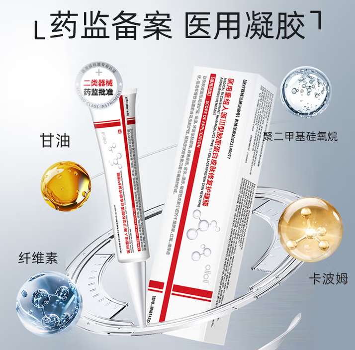 Olioli 膠原蛋白凝膠是經國家藥品監督管理局嚴格審批的醫用修護產品(吉械注準 20222140077),專為炎癥后紅斑(紅痘印)、炎癥后色素沉著(黑褐色痘印)及凹陷性痘坑設計,核心依托 “皮膚修復與再生 - 舒緩抗炎 - 屏障加固” 的三維一體修護機制,精準解決痘肌 “印坑反復”“淡化緩慢” 的難題,尤其適合痘痘已消退、僅需修護印坑的人群。