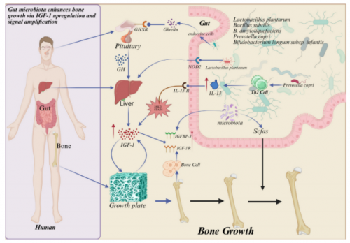 ? 激活“生長動力信號” :骨骼生長的“核心動力” 是生長激素(GH)和胰島素樣生長因子1(IGF-1),賽哺高BL-11益生菌可直接刺激生長激素分泌,影響生長因子IGF-1合成,為骨骼縱向生長“加油”。