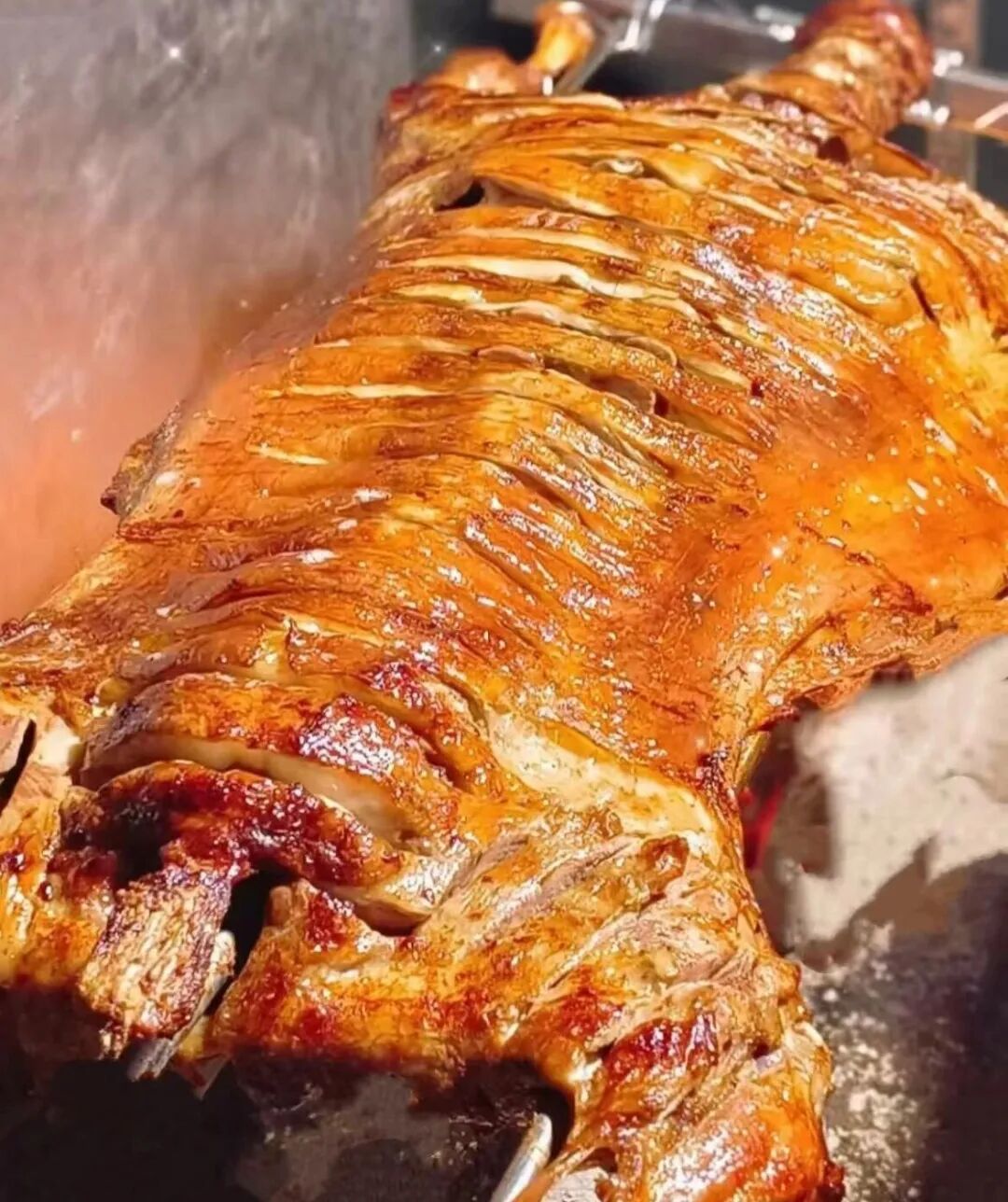吃完牛肉不過癮?烤全羊即刻登場(chǎng)!精選整只優(yōu)質(zhì)羔羊,十余種香料古法腌制12小時(shí),360度旋轉(zhuǎn)慢烤6個(gè)小時(shí),外皮烤得金黃酥脆,一刀切下滋滋冒油,內(nèi)里羊肉嫩到脫骨,蘸上秘制干碟或甜辣醬,焦香、鮮香在口中炸開。