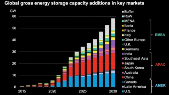 全球范圍內,儲能市場呈現多極增長態勢,歐美電網基礎設施替換需求與新興市場爆發共同構筑了鋰電行業中長期增長空間。美國方面,人工智能與數據中心的迅猛發展帶來了巨大的電力需求,光儲系統作為數據中心主電源的應用前景廣闊,機構預測2025年美國儲能裝機預計達45GWh,同比增長31%。歐洲市場儲能需求正從戶用為主向大儲并舉轉變。2025年歐洲儲能需求預計達30GWh,同比增長70%。德國、英國、意大利等主要國家為增強能源自主性,紛紛加大儲能支持力度。