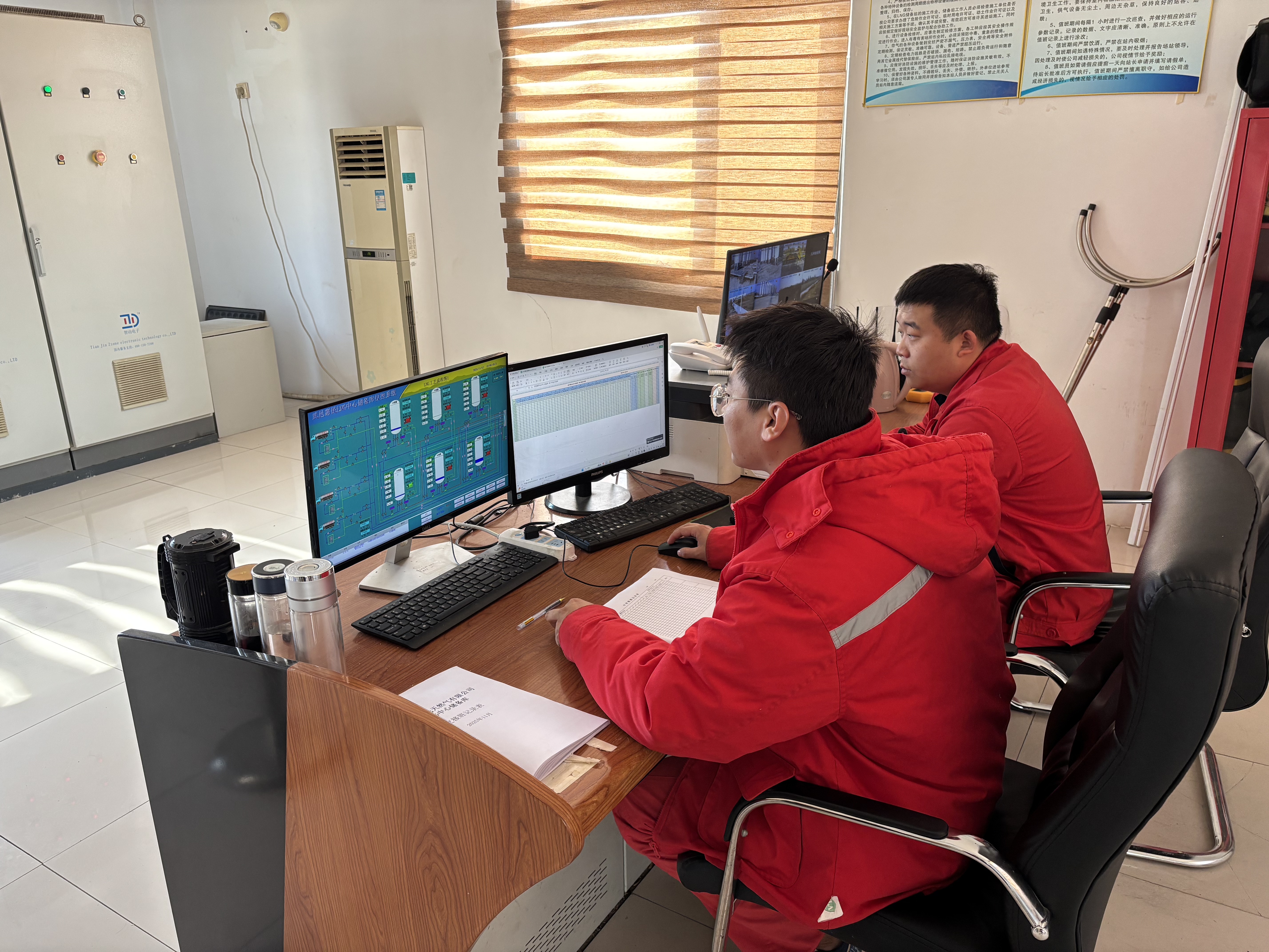衡水市武邑縣惠民天然氣有限公司工作人員在中控室內(nèi)查看實時數(shù)據(jù) 劉磊 攝
