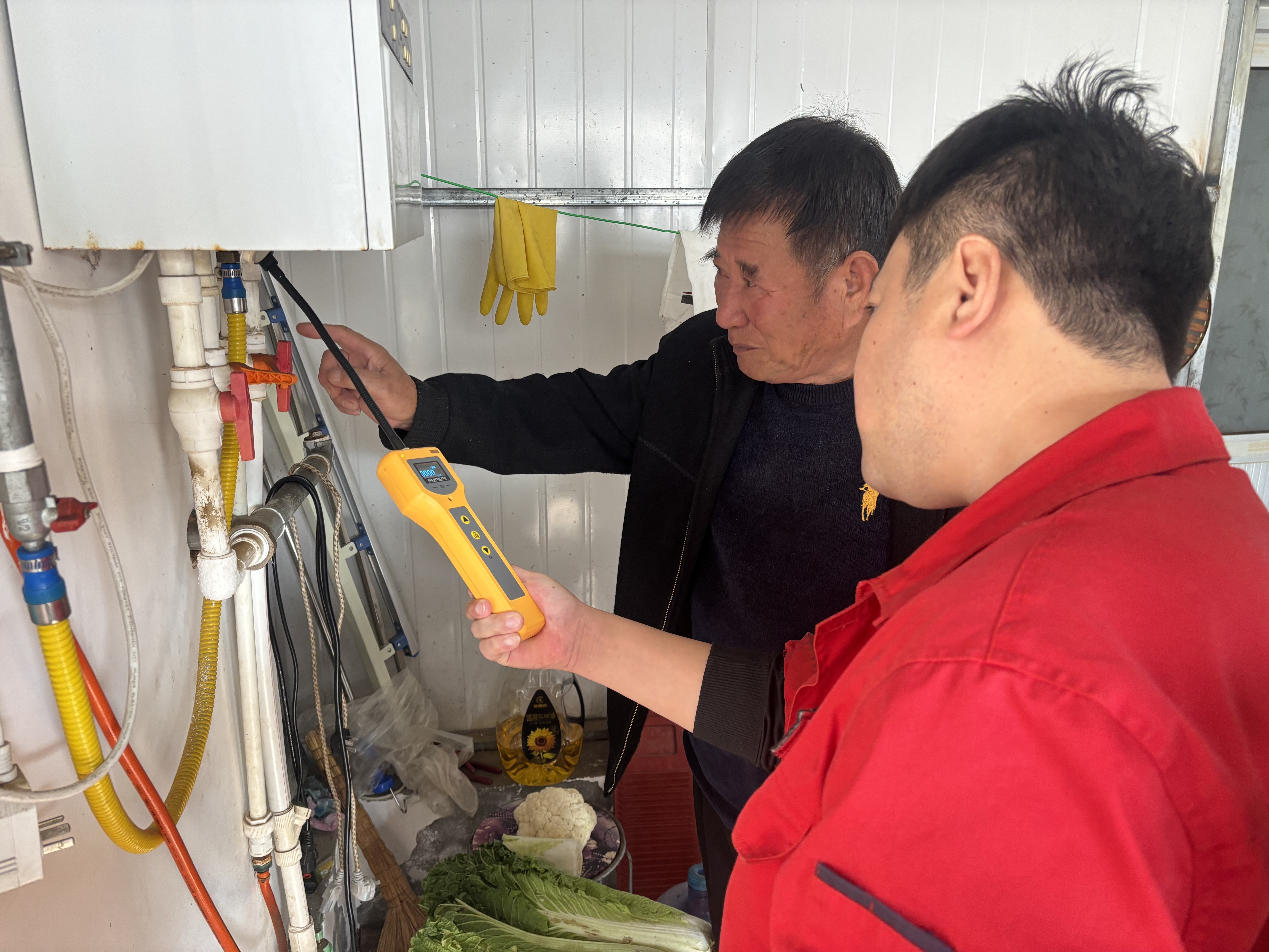 “您看這個黃色按鈕是緊急切斷閥,聞到異味先關(guān)閥開窗,千萬別碰電器!”在冀州區(qū)冀州鎮(zhèn)楊孔五村村民孔德成家中,冀州區(qū)住建局燃?xì)獍踩珜<覄⒂烂褚贿呌脵z測儀排查管道泄漏,一邊手把手講解安全常識。為保障廣大農(nóng)村居民溫暖清潔過冬,冀州區(qū)住建局燃?xì)廪k聯(lián)合專家團隊組建專項檢查組,走進群眾家中,為村民解答燃?xì)獍踩颓鍧嵢∨葐栴},以村民需求為導(dǎo)向,及時消除村民顧慮,真真切切解決群眾取暖問題,讓村民身暖心更暖。